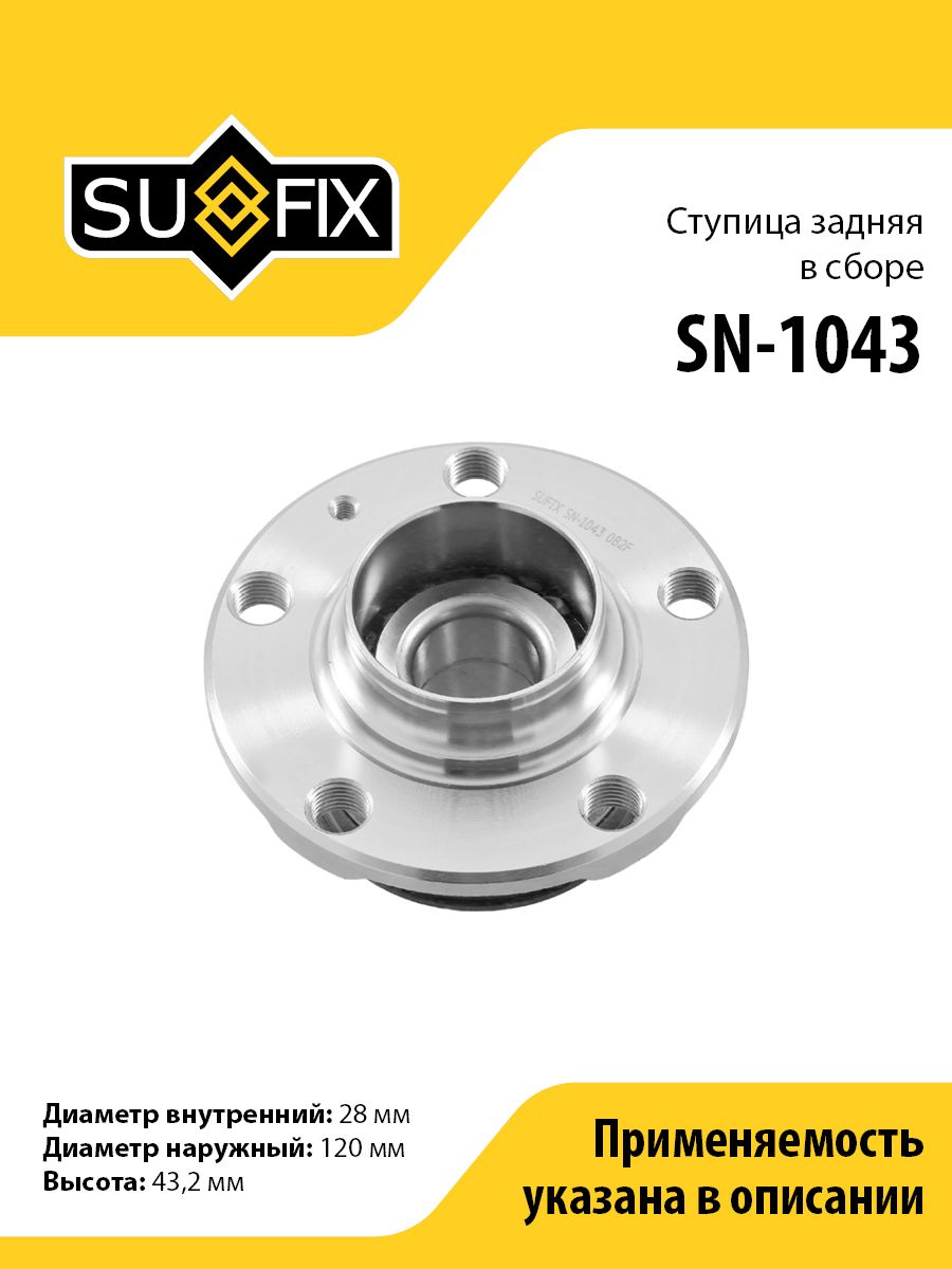 Ступица задняя в сборе SUFIX SN-1043. Применение: SKODA Fabia II 11> / Rapid 11>, VW Polo Sedan 11>.