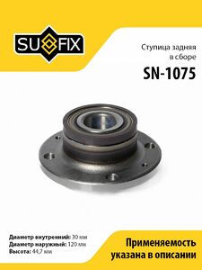 Ступица задняя в сборе SUFIX SN-1075. Применение: OPEL Corsa D 1.0-1.4 09>.