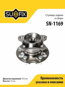 Ступица задняя в сборе SUFIX SN-1169. Применение: LEXUS RX300-400h 4WD 03-08, TOYOTA Highlander I 2.4-3.3 4WD 03-07 / Venza 2.7-3.5 4WD 08>.