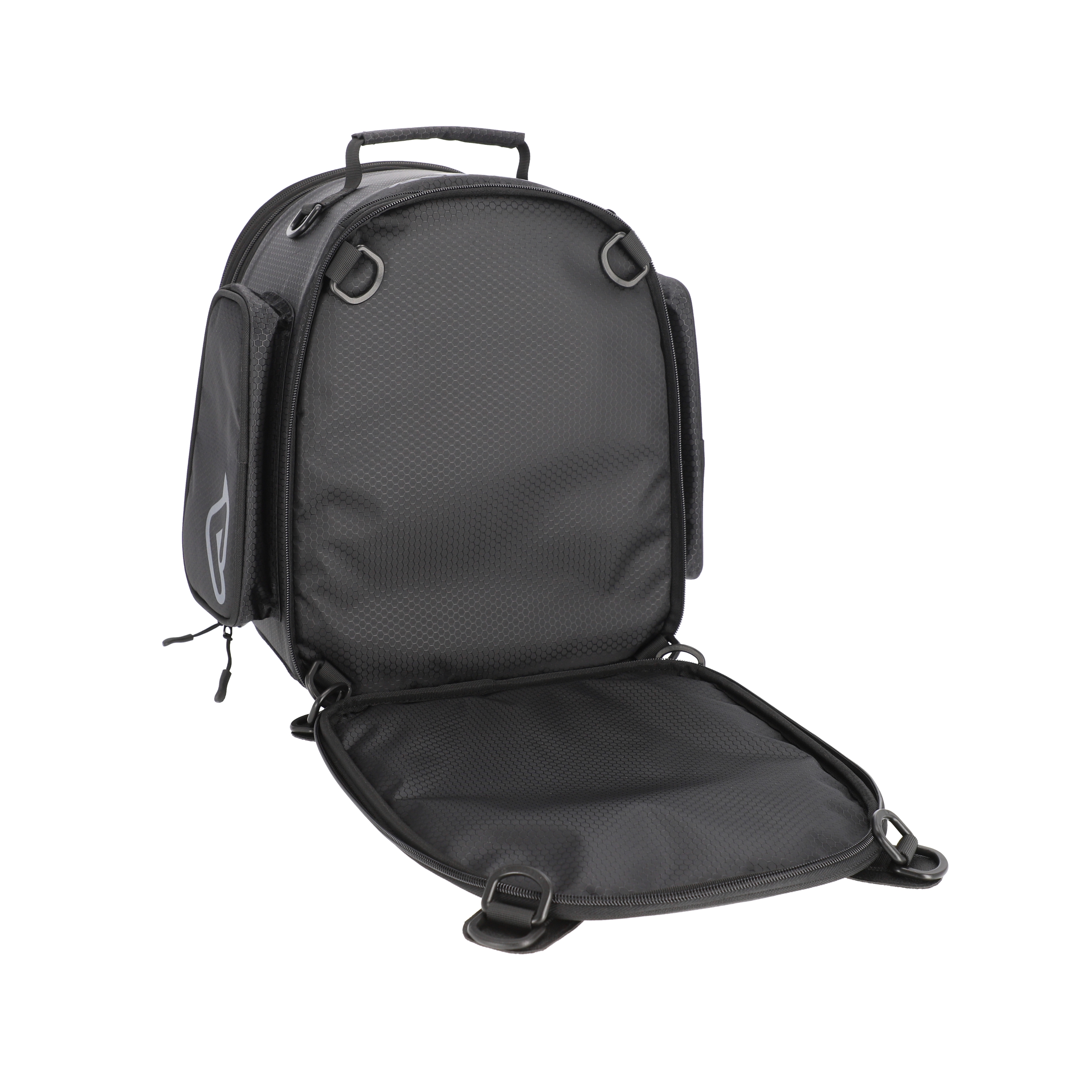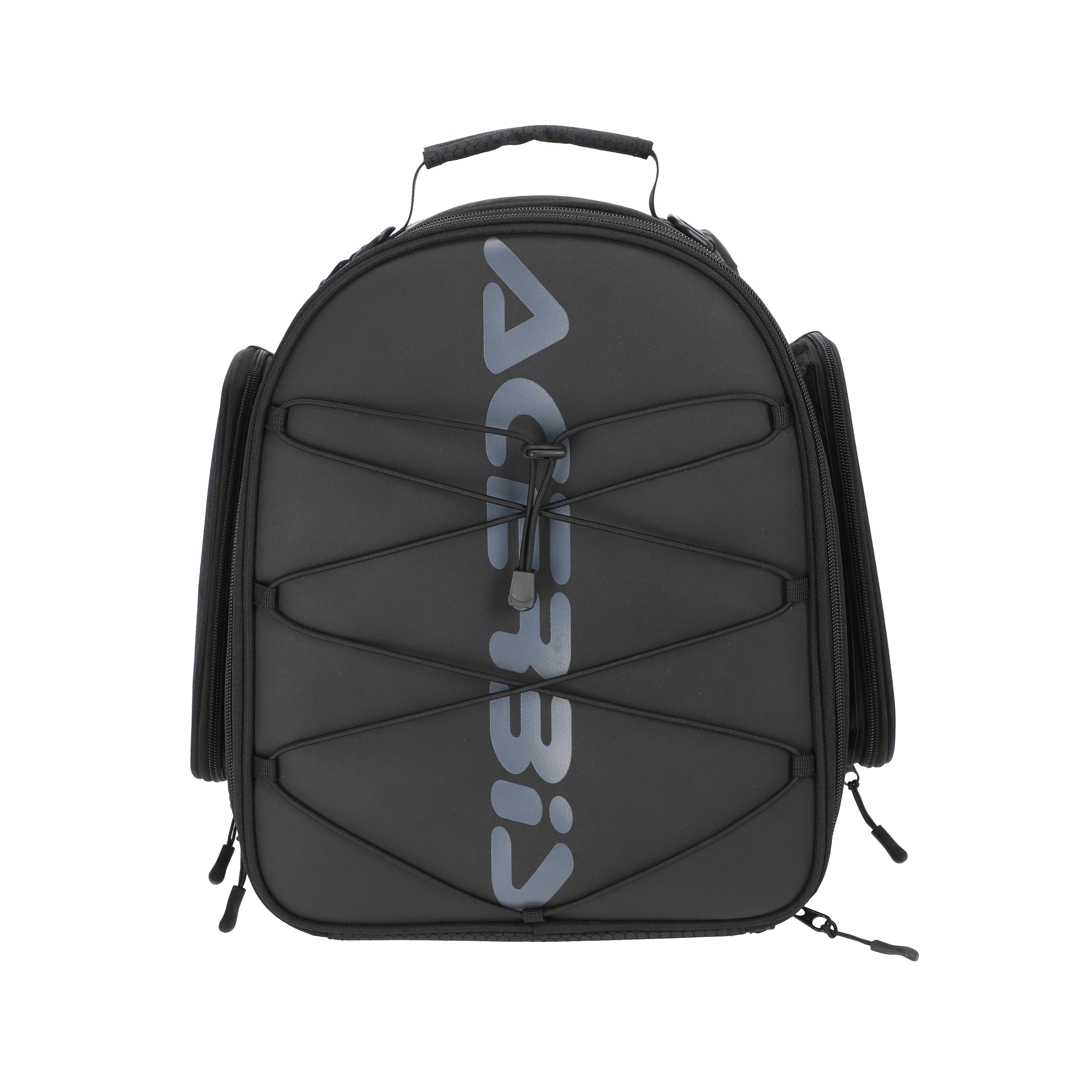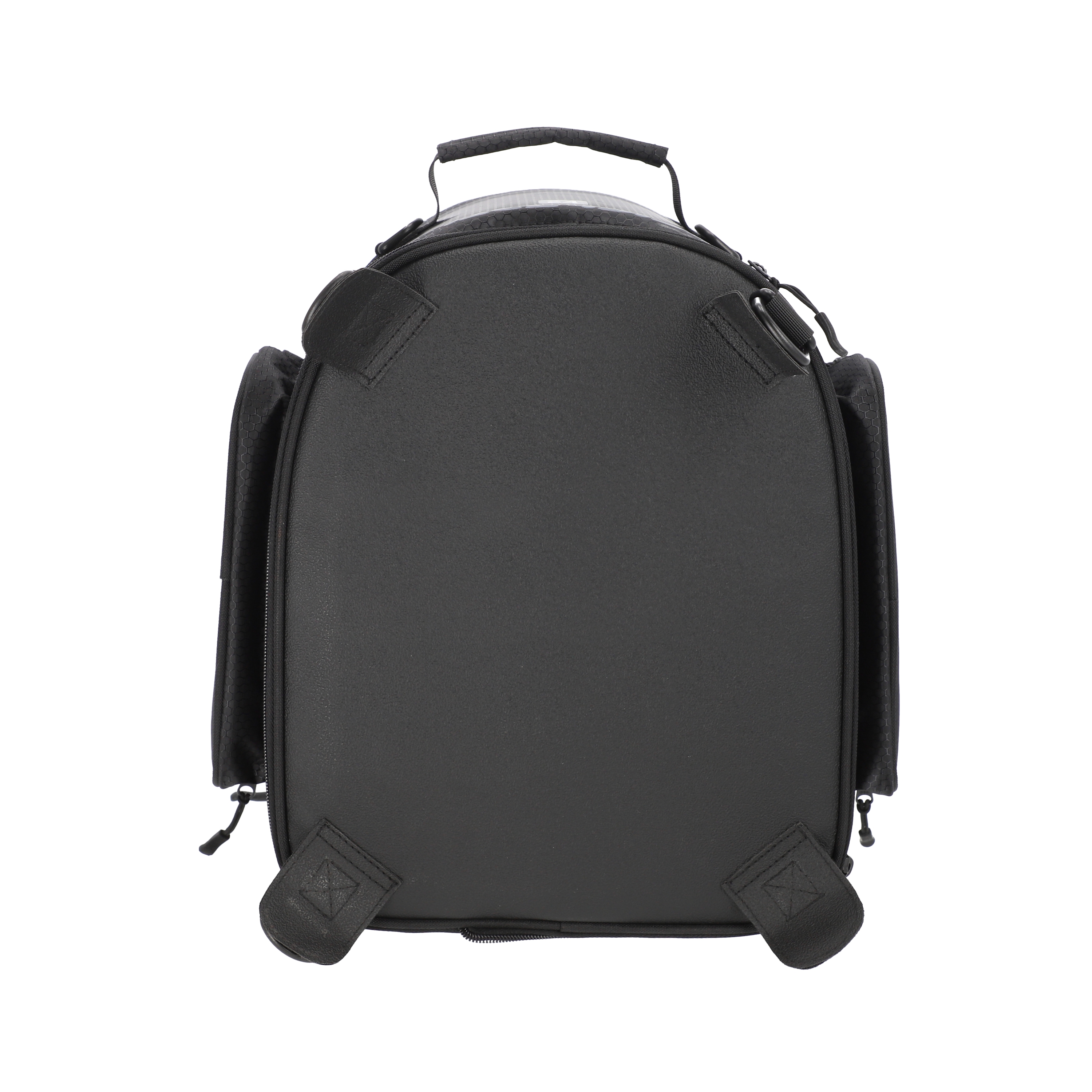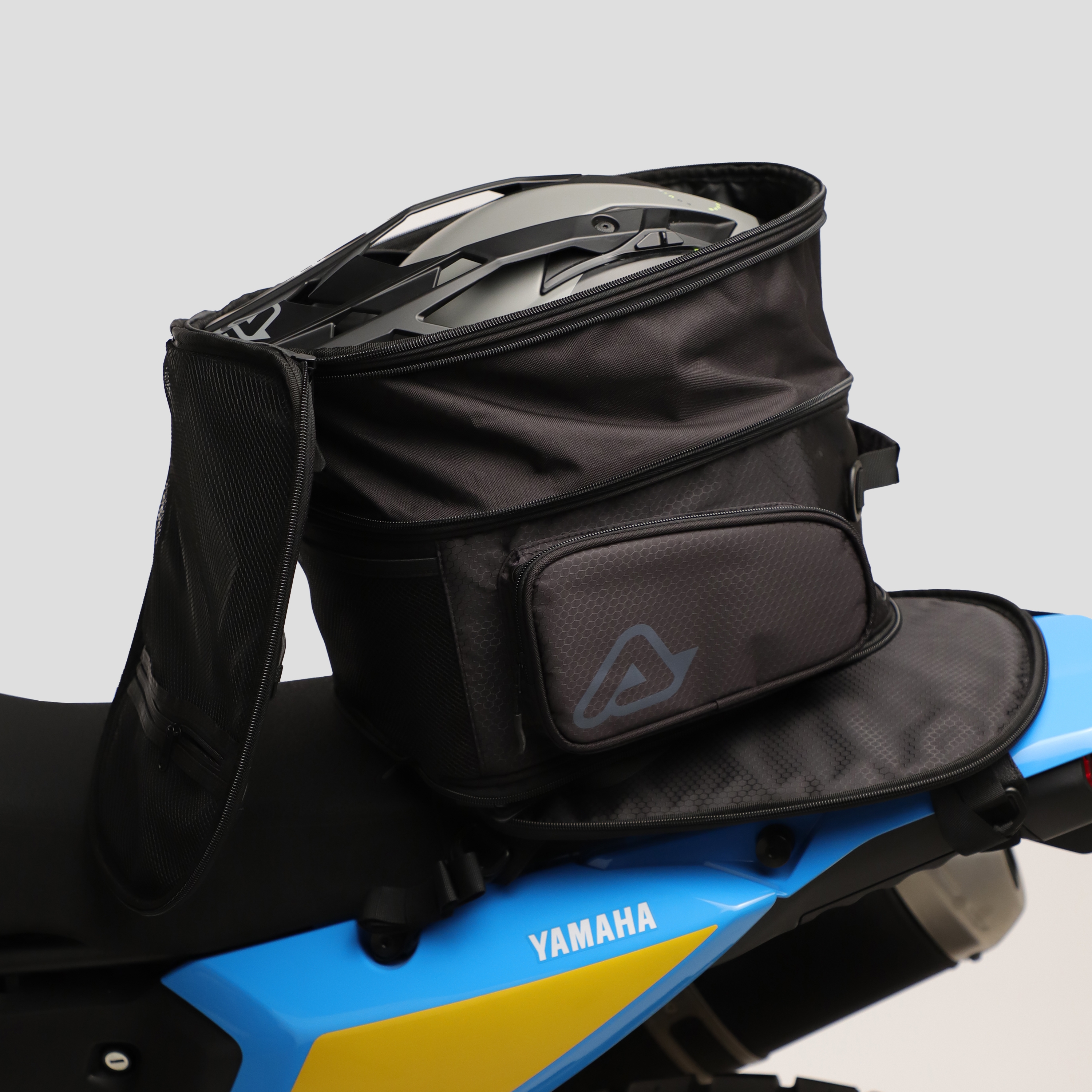 - Съёмный корпус: основание остаётся закреплённым на мотоцикле, а сама сумка легко отстёгивается по молнии