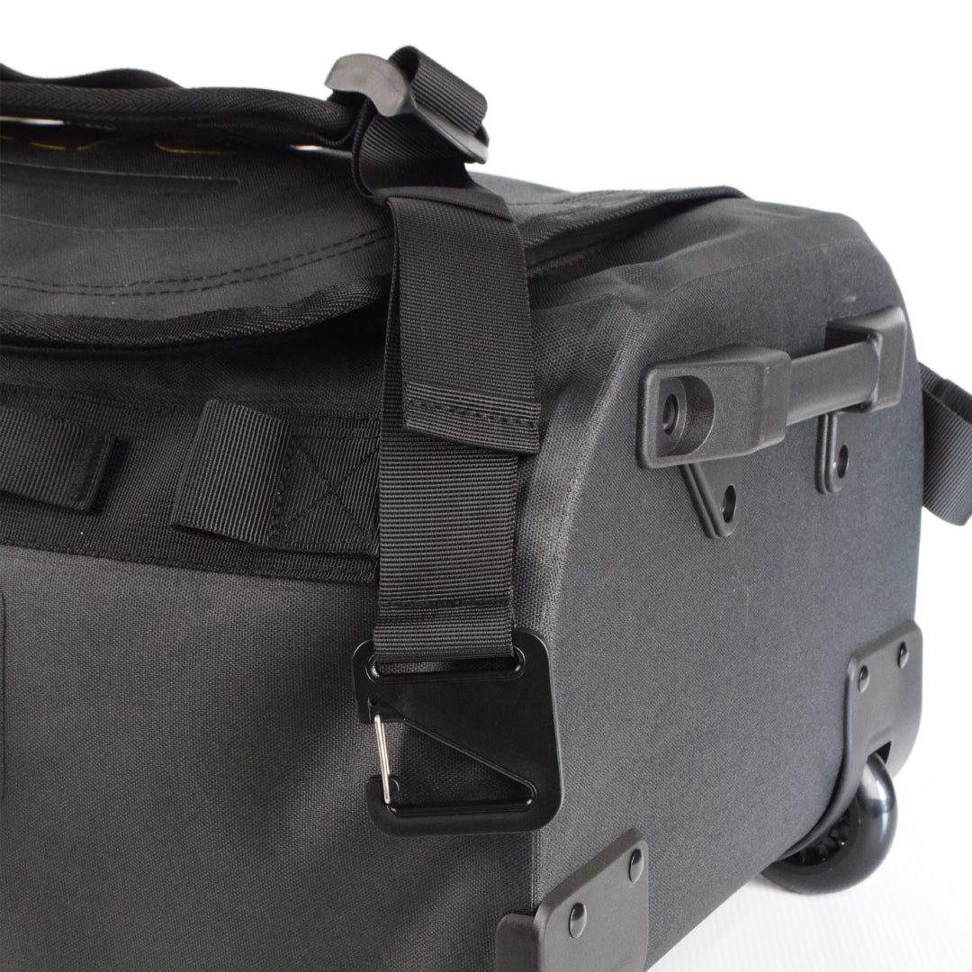 Защита от влаги реализована на высшем уровне благодаря использованию современного материала TPU и специальной U-образной молнии с водонепроницаемым покрытием. Клапан надежно фиксируется, что исключает попадание влаги даже при неожиданном дожде. Универсальность ношения обеспечивается продуманной конструкцией: съемные плечевые ремни позволяют использовать сумку как удобный рюкзак, а телескопическая ручка с колесами дает возможность легко катить ее за собой.