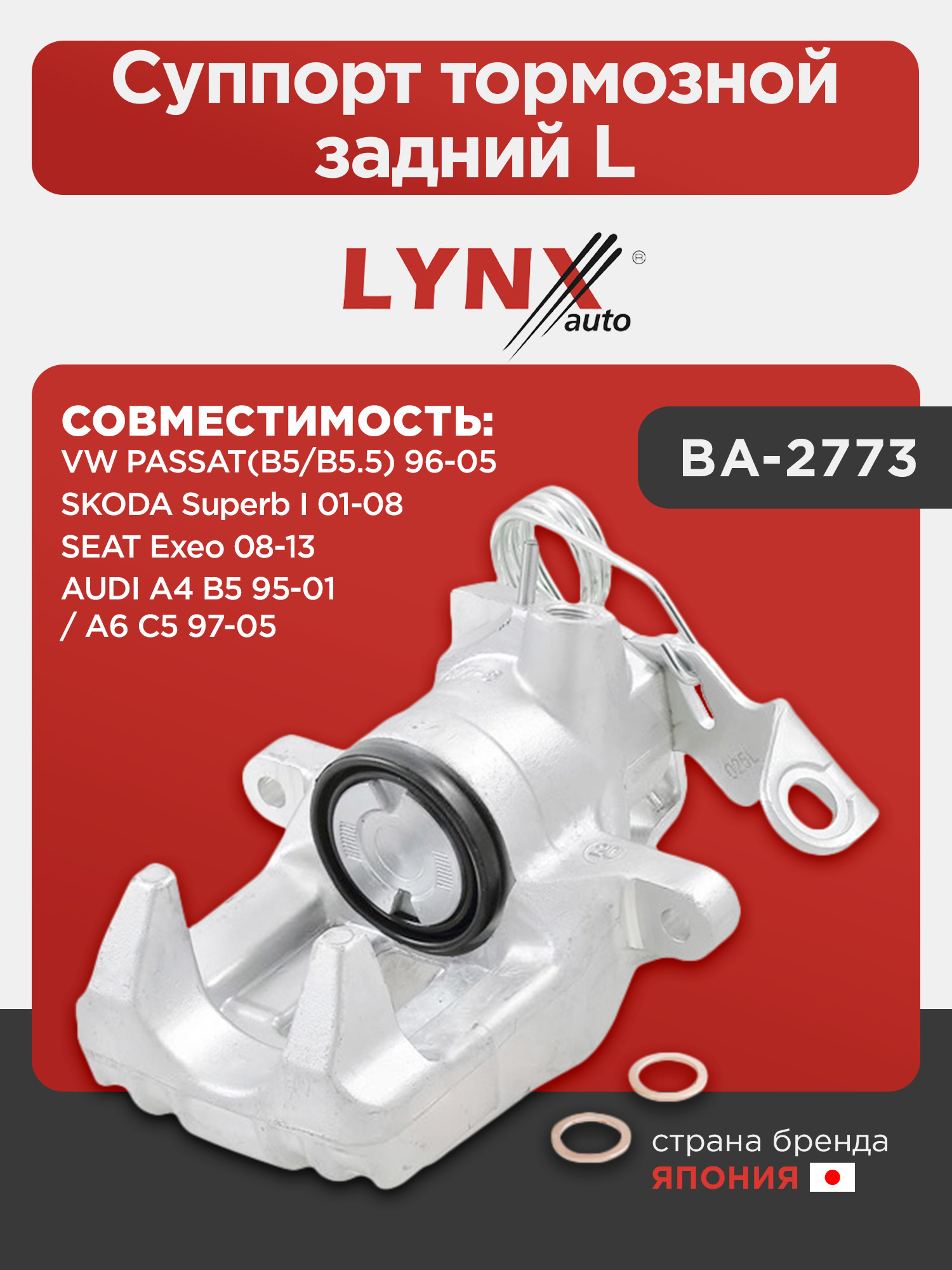 Суппорт тормозной задний L LYNXauto BA-2773. Для AUDI A4 B5 95-01 / A6 C5 97-05, SEAT Exeo 08-13, SKODA Superb I 01-08, VW PASSAT(B5/B5.5) 96-05