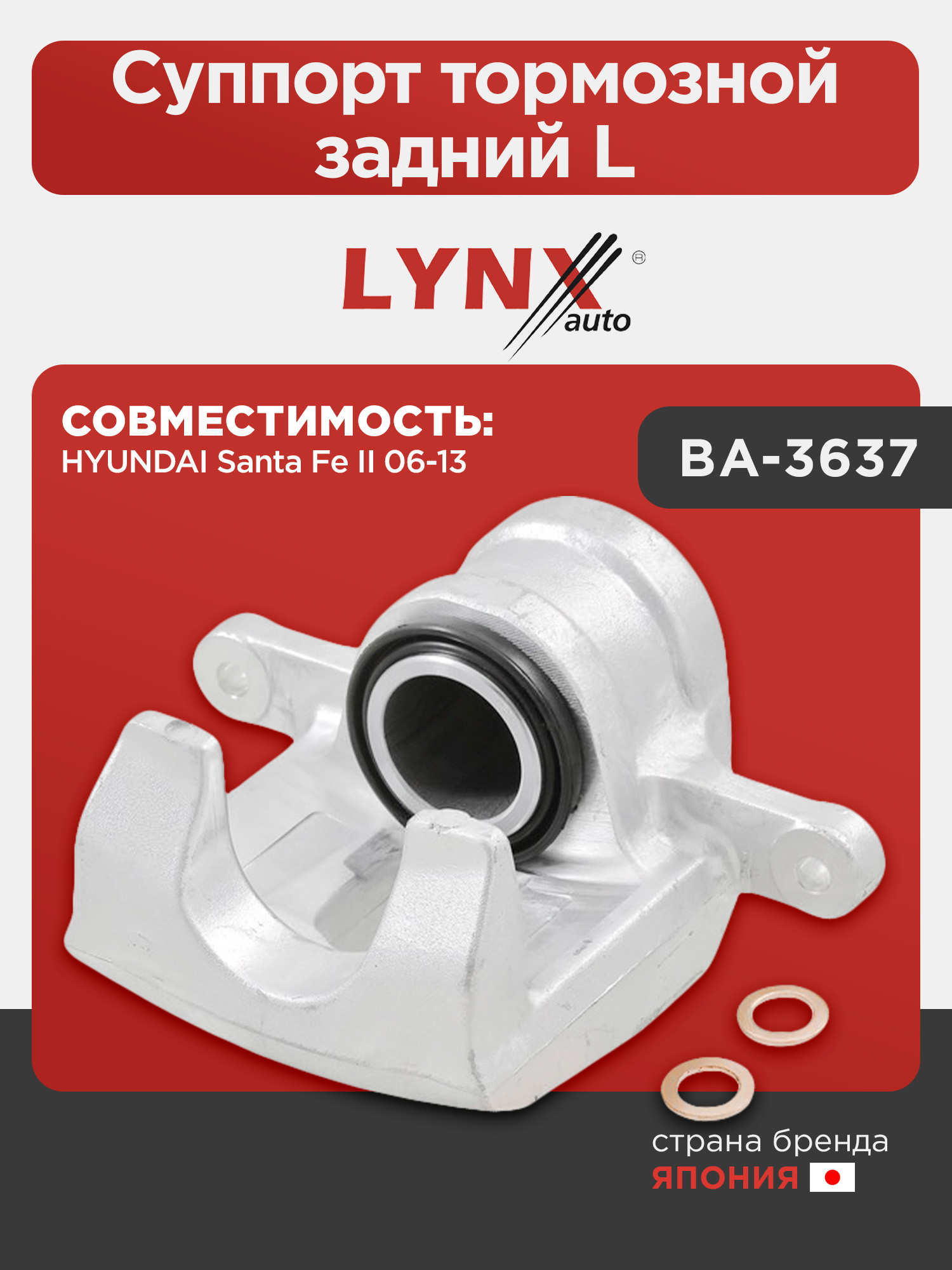 Суппорт тормозной задний L LYNXauto BA-3637. Для HYUNDAI Хендаи Santa Fe(Санта Фе) II 06-13