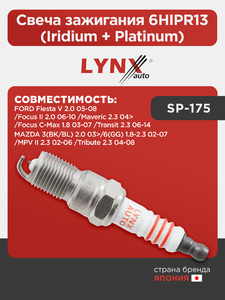 Свеча зажигания 6HIPR13 (Iridium + Platinum) LYNXauto SP-175. Для FORD ФОРД Fiesta V 2.0 05-08/Focus(Фокус) C-Max(Ц Макс) 1.8 03-07/Focus(Фокус) II 2.0 06-10/Maveric 2.3 04>/Transit(Транзит) 2.3 06-14, MAZDA Мазда 3(BK/BL) 2.0 03>/6(GG) 1.8-2.3 02-07/MPV