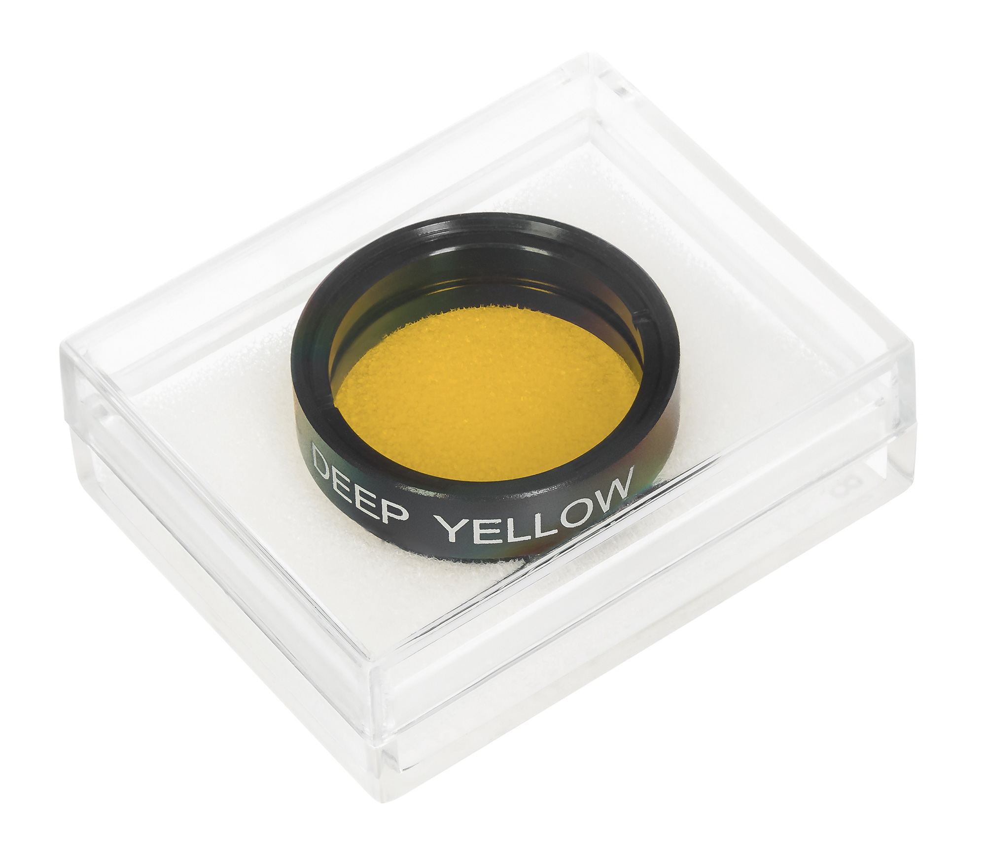Фильтры желтого цвета достаточно универсальны, но чаще всего используются для улучшения видимости колец Сатурна, повышения контрастности поверхности Луны, выделения малоконтрастных полос в атмосфере Венеры, изучения полярных областей Юпитера, усиления видимости хвостов комет и т. д.