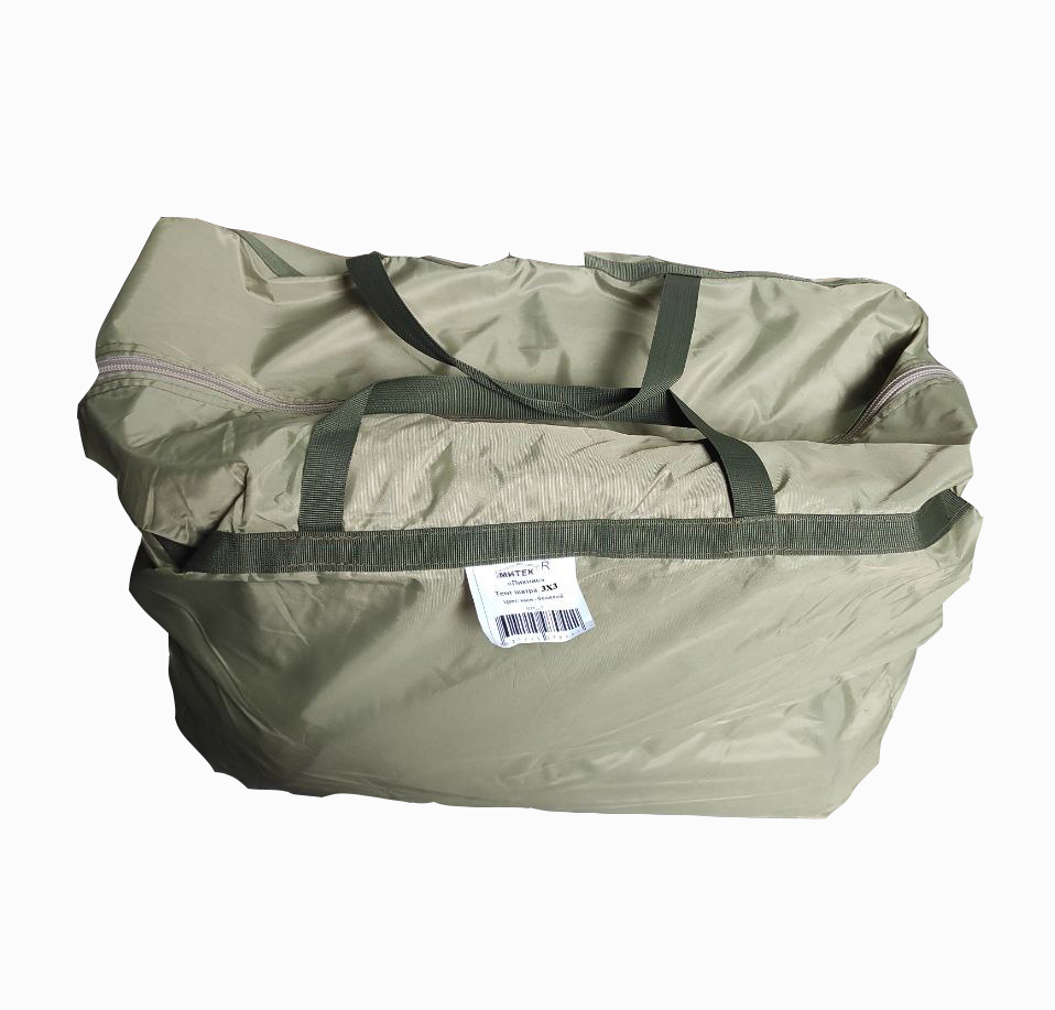 Тент пошит из полиэфирной ткани с водоотталкивающей пропиткой, устойчивой к воздействию солнечных лучей. Швы крыши проклеены.