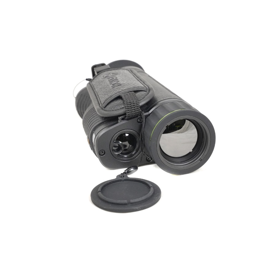 Тепловизор оснащен высококачественной германиевой оптикой с фокусным расстоянием 35 мм и апертурой F1.0, что обеспечивает отличное качество изображения даже в условиях слабой видимости. Начальное оптическое увеличение составляет 3,8х, а цифровой зум позволяет увеличивать изображение в диапазоне 1х - 8х. Максимальный уровень кратности составляет 30,4х, что дает возможность детализированного изучения объектов на больших расстояниях. Поле зрения составляет 7,5° х 5,7°, что в линейном выражении эквивалентно области пространства 13,1 х 10,0 м на дистанции 100 метров. Регулировка фокусировки выполняется вручную с помощью удобного поворотного механизма на объективе.