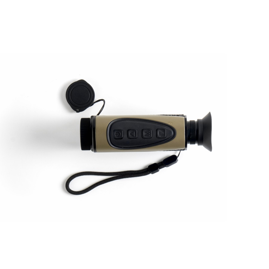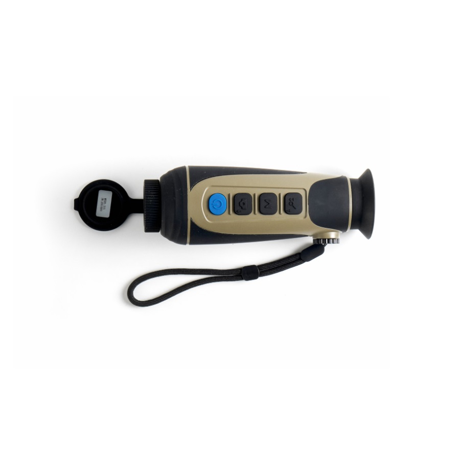 Это ультралегкий и доступный тепловизионный монокуляр на матрице 256×192 (12 мкм, NETD ≤25 мкКл) с объективом 15 мм. Прибор имеет штатное увеличение ×1.4, цифровой зум до 4x, OLED-дисплей, встроенный аккумулятор (≥7 ч работы), 32 ГБ памяти, WiFi и композитный корпус с защитой IP67. Широкий диапазон диоптрийной коррекции (-7 до +2) подходит для пользователей с сильными нарушениями зрения.