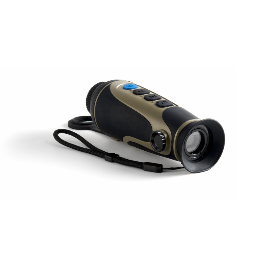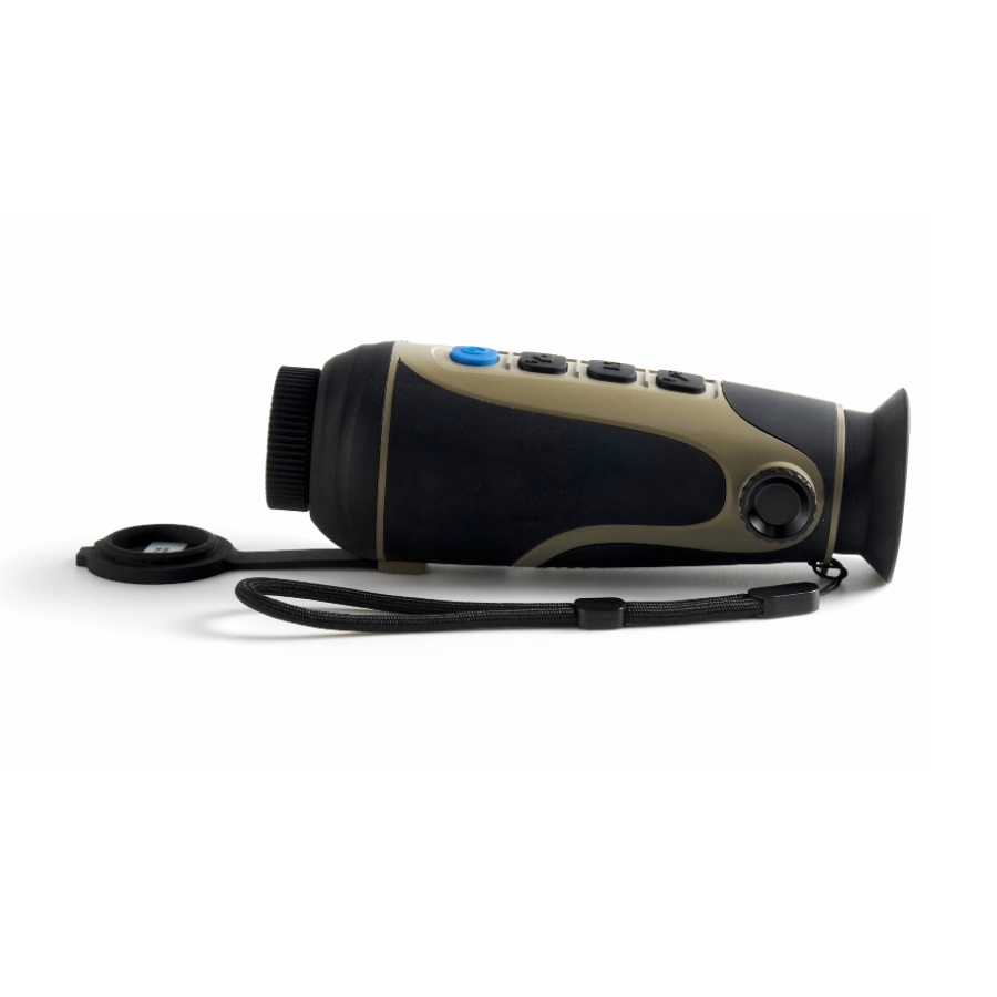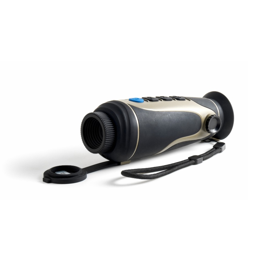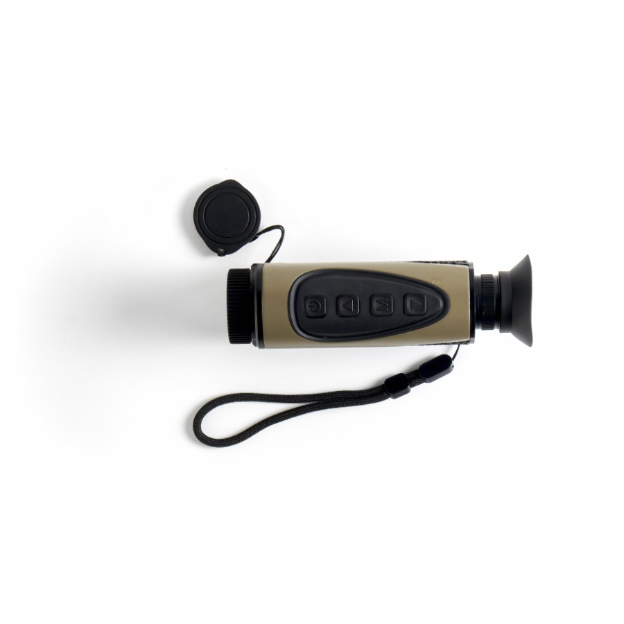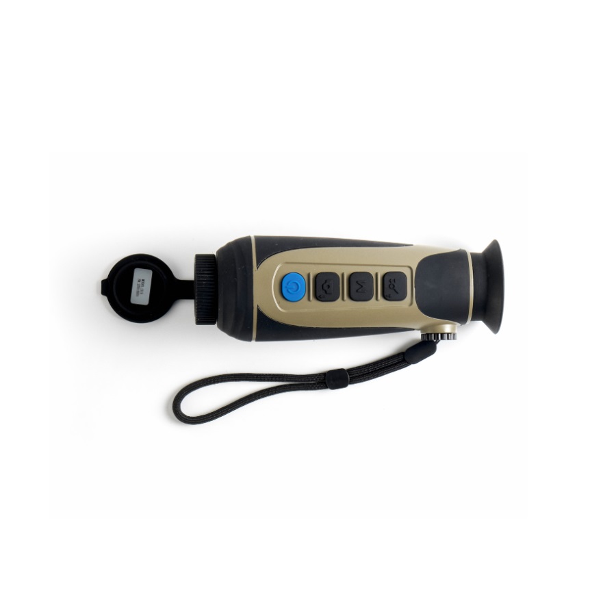 Это легкий (345 г) тепловизионный монокуляр на матрице 384×288 (12 мкм, NETD ≤20 мкКл) с объективом 19 мм. Прибор имеет штатное увеличение ×1.8, цифровой зум до 4x, OLED-дисплей, встроенный аккумулятор (≥7 ч работы), 32 ГБ памяти, WiFi и композитный корпус с защитой IP67. Широкий диапазон диоптрийной коррекции (-7 до +2) подходит для пользователей с сильными нарушениями зрения.