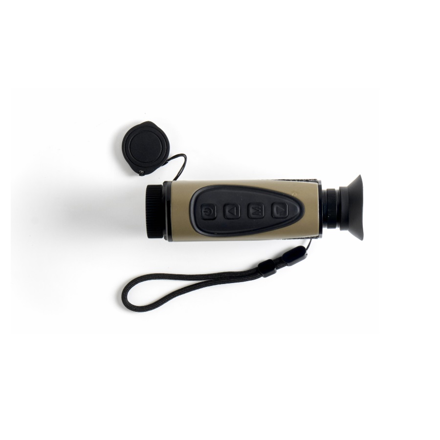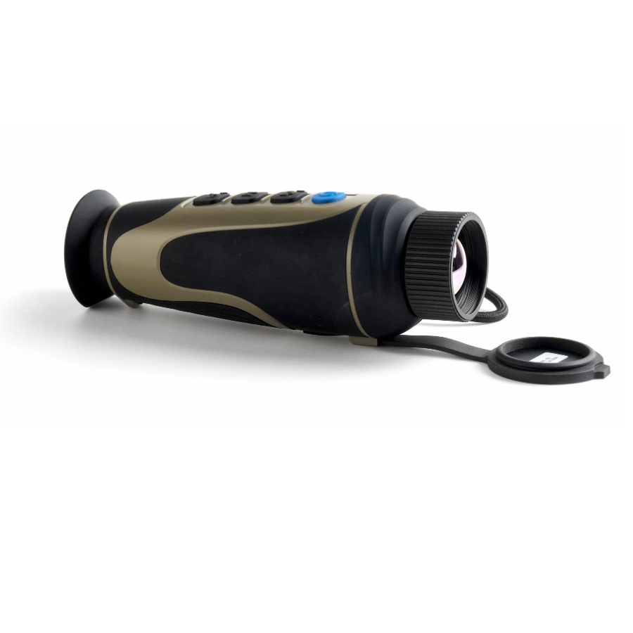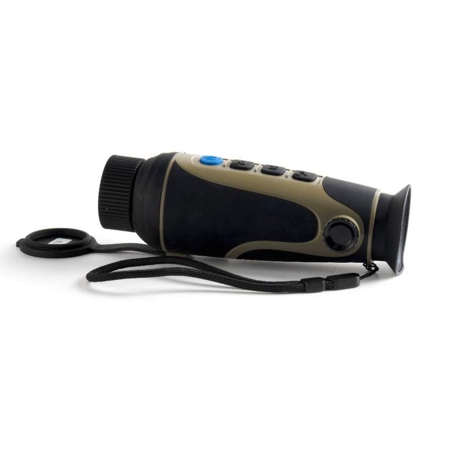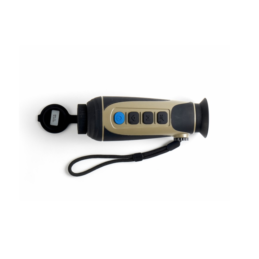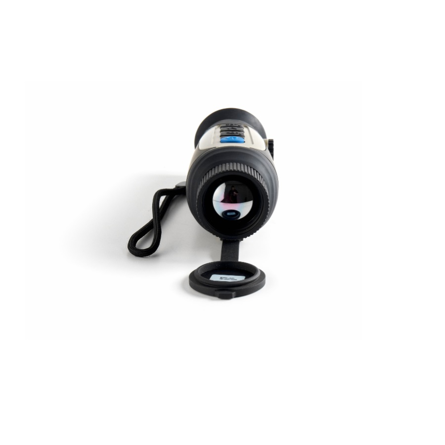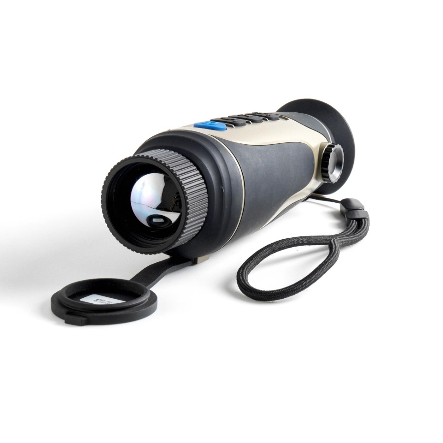 Это компактный (380 г) тепловизионный монокуляр с флагманской матрицей 640×512 (12 мкм, NETD ≤20 мкКл) и универсальным объективом 35 мм. Прибор имеет угол обзора 12.5°×9.4°, штатное увеличение ×2, цифровой зум до 8x, OLED-дисплей, встроенный аккумулятор (≥6 ч), 32 ГБ памяти, WiFi и композитный корпус с защитой IP67. Диоптрийная коррекция от -7 до +2 подходит для пользователей с сильными нарушениями зрения.