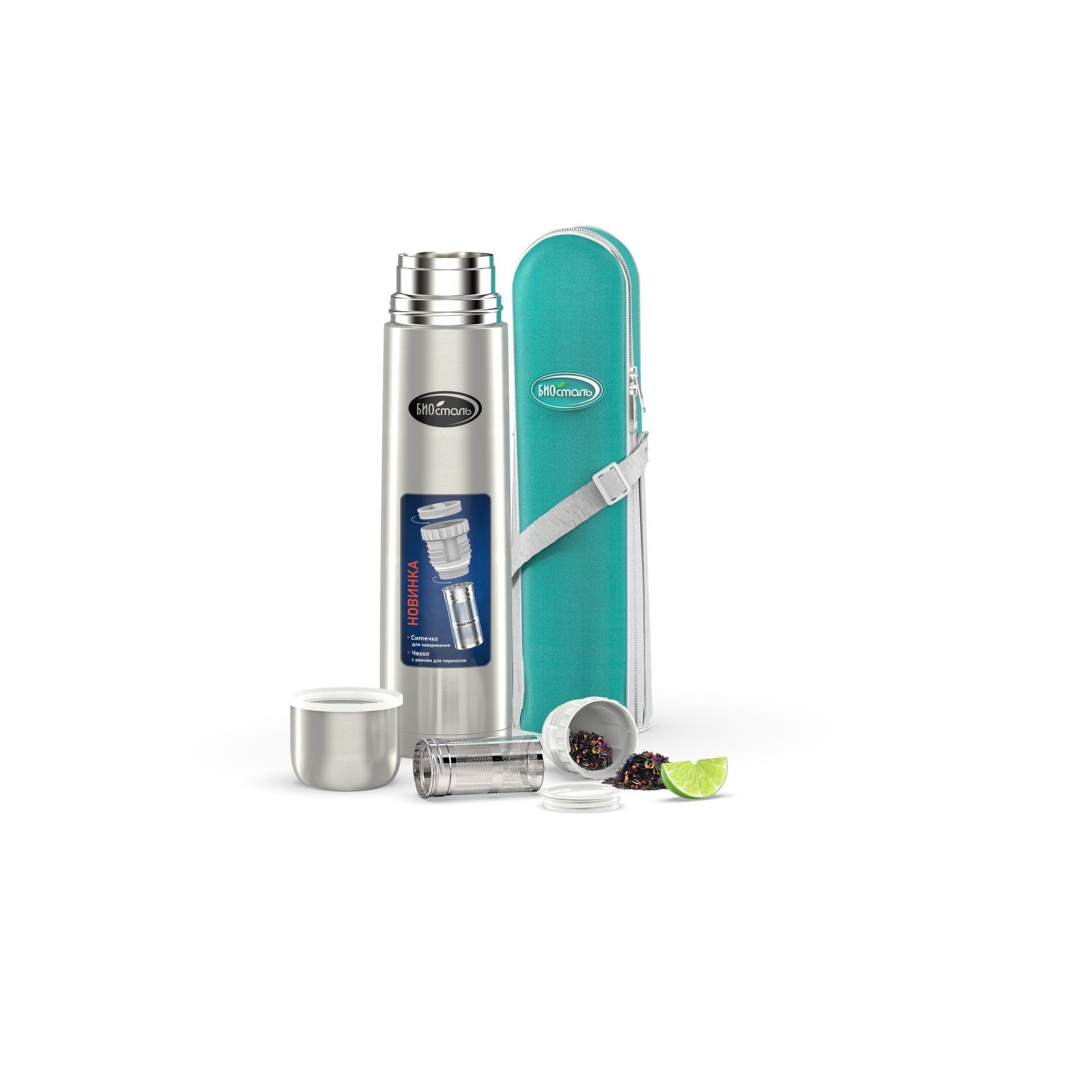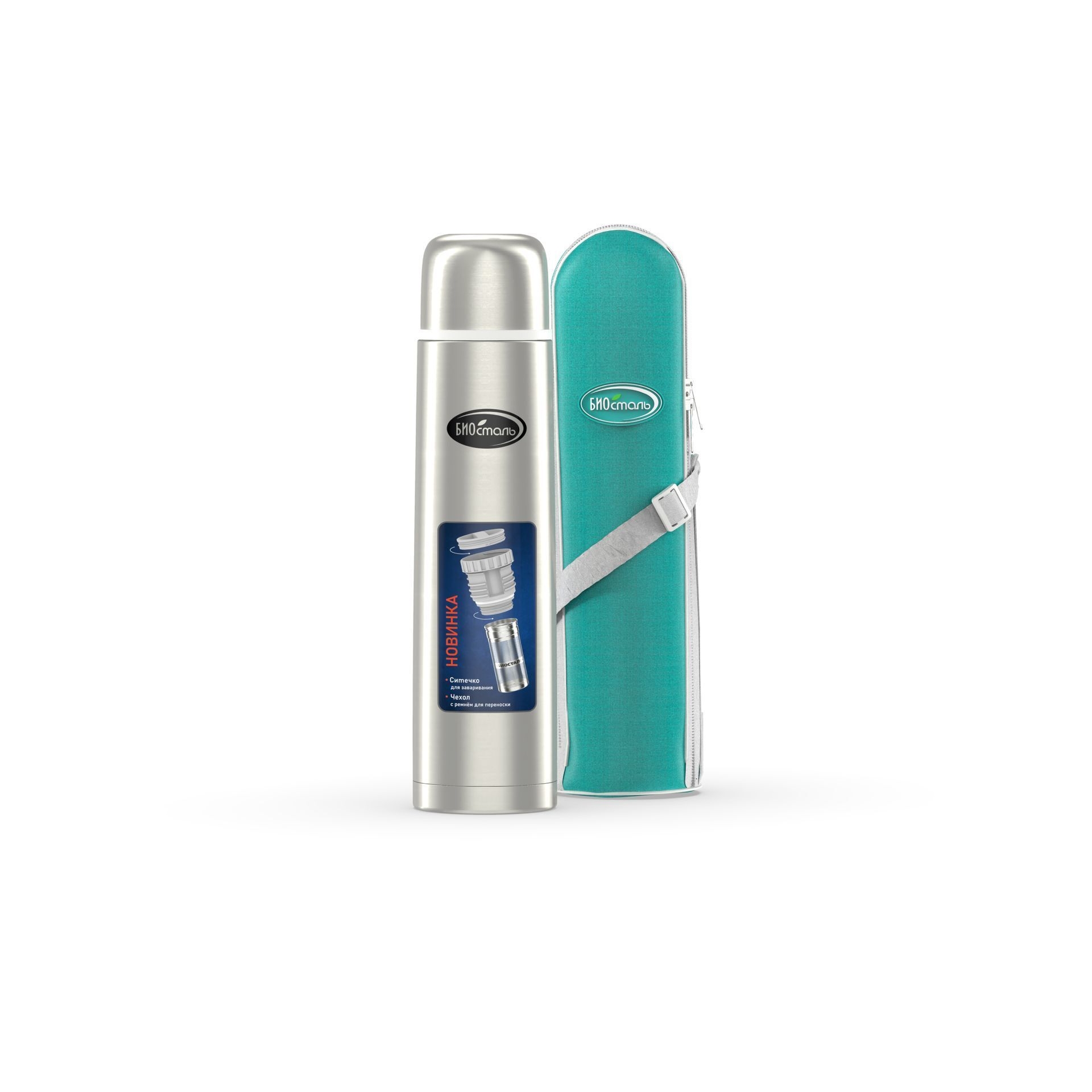 Термос Biostal (1,2 литра), с ситечком и чехлом, стальной