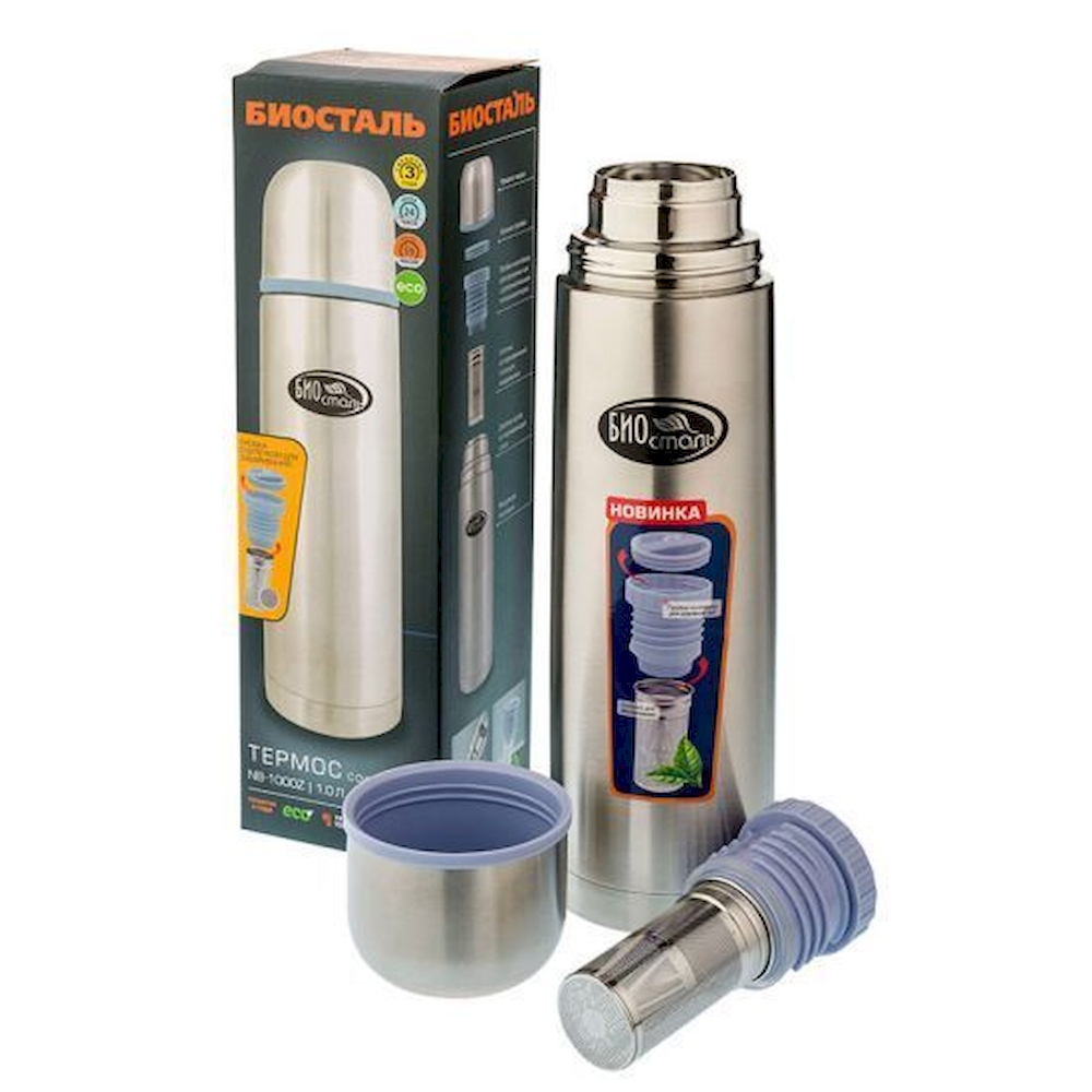 Термос Biostal (1 литр) пробка с ситечком, стальной