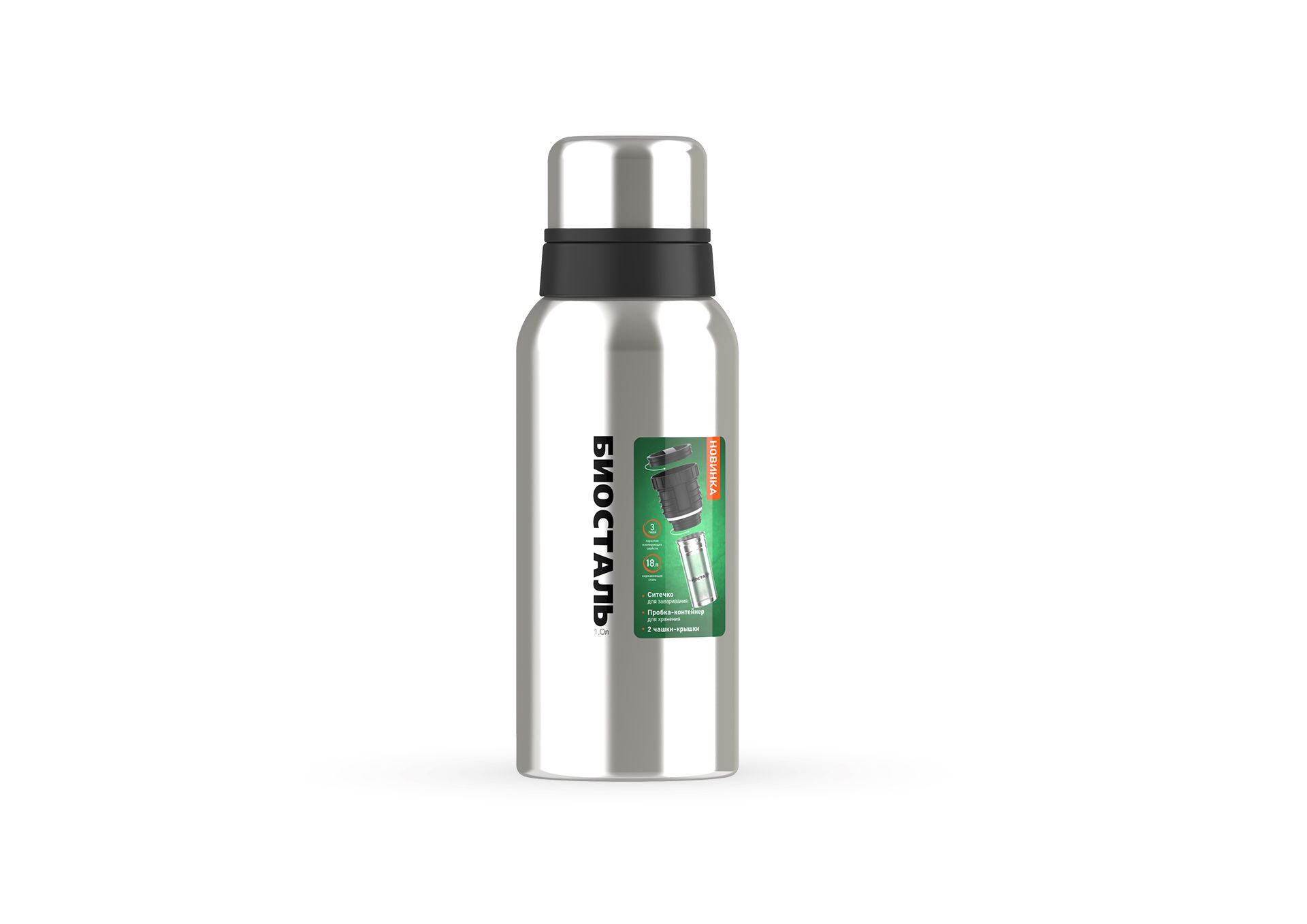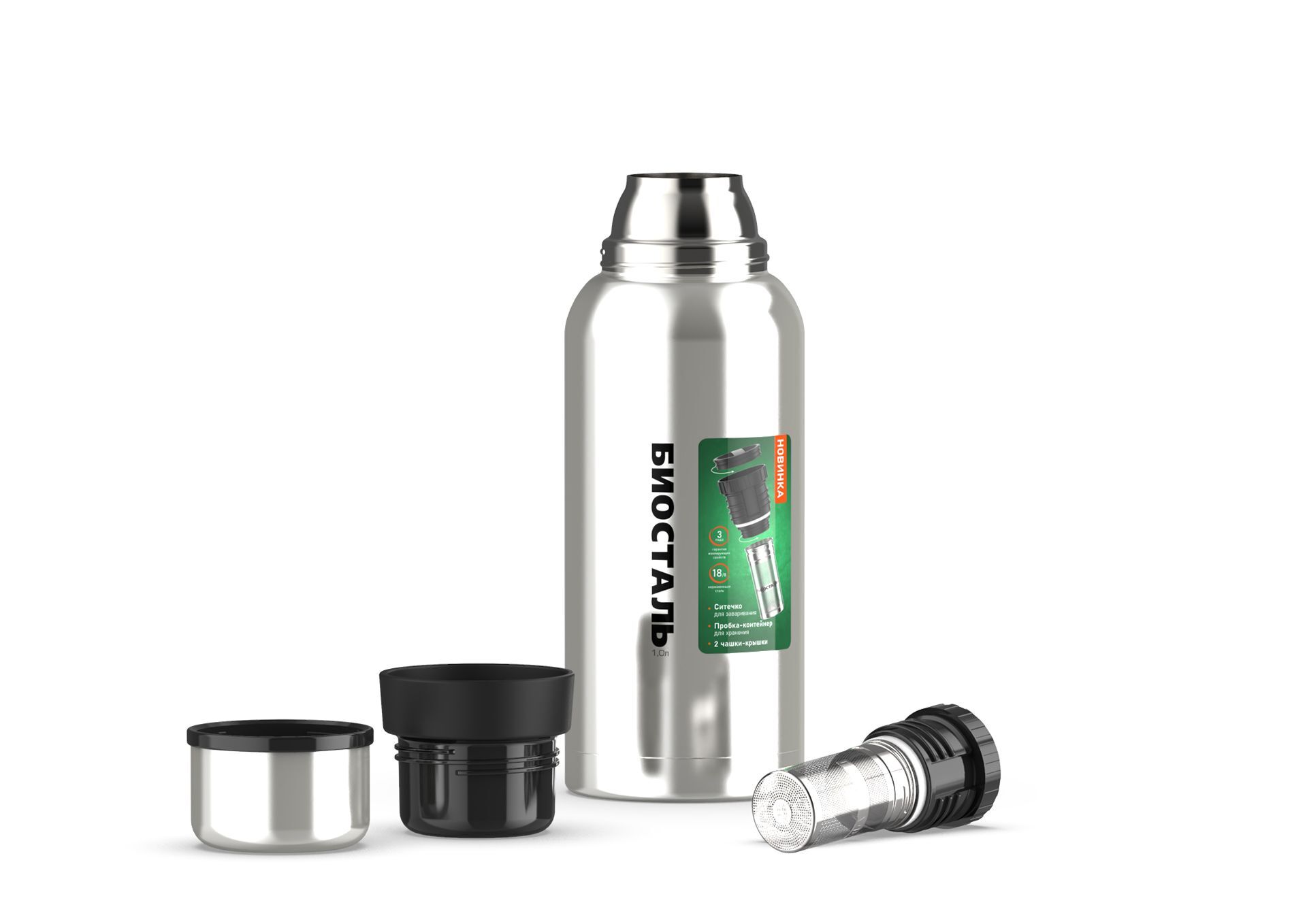 Термос Biostal Охота (1 литр), 2 чашки, с ситечком, стальной