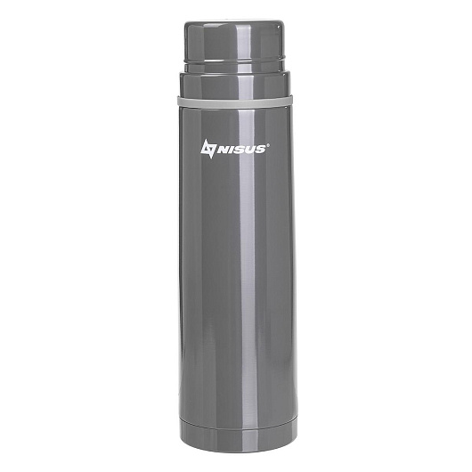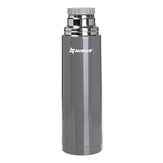 Термос Nisus серый металлик 1литр (2 крышки-кружки)(N-TM-035-K)