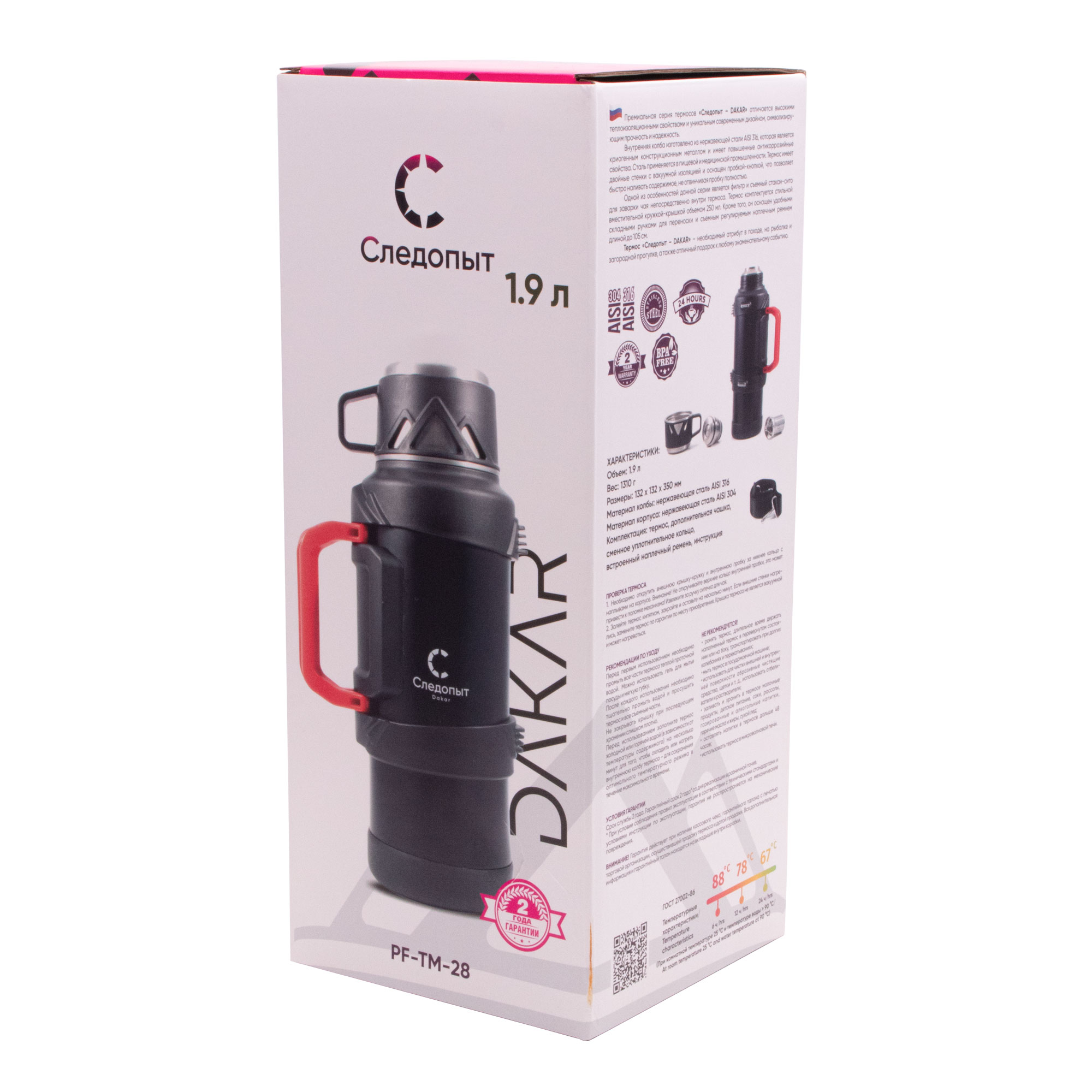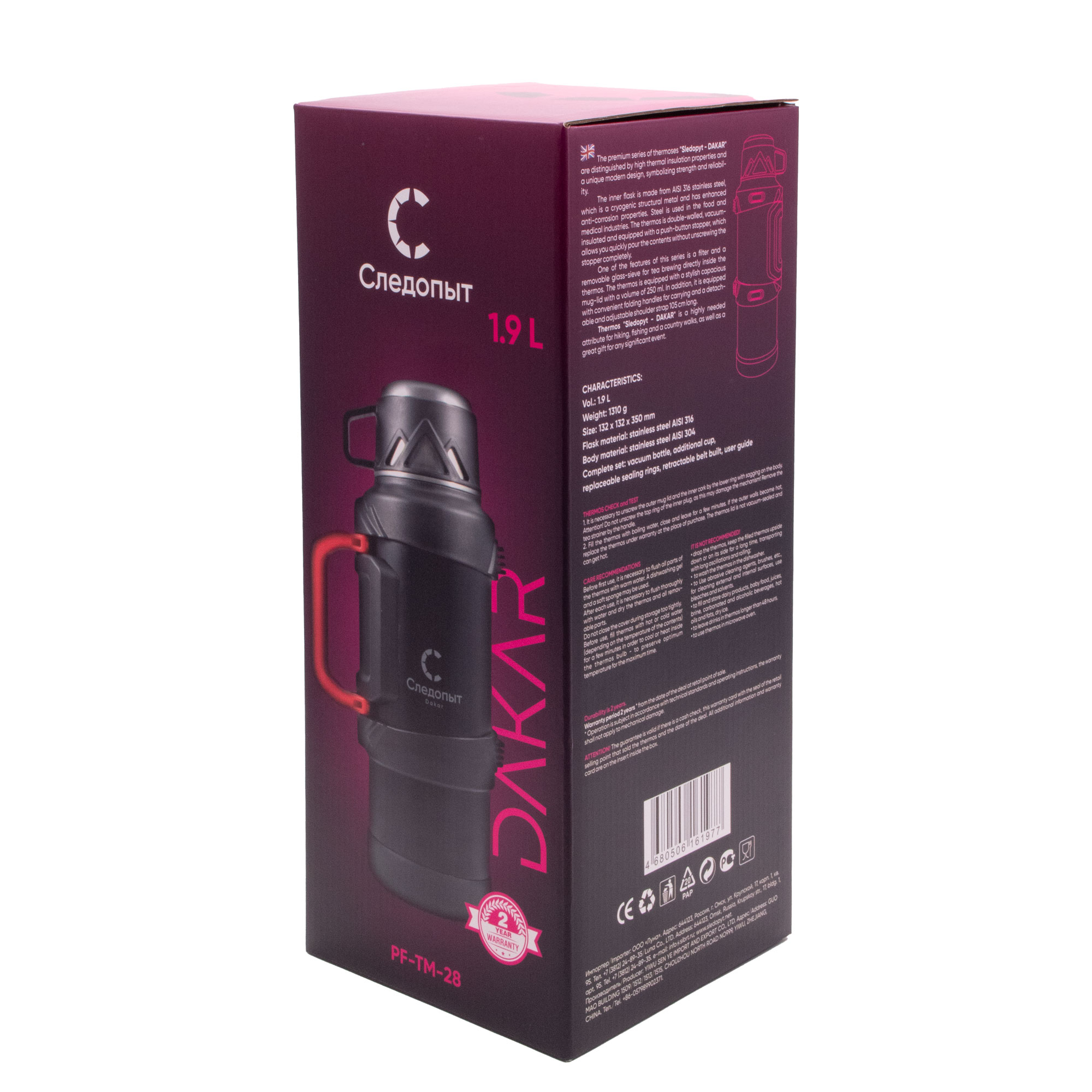 Термос СЛЕДОПЫТ-DAKAR со складными ручками, 1,9 л/12/
