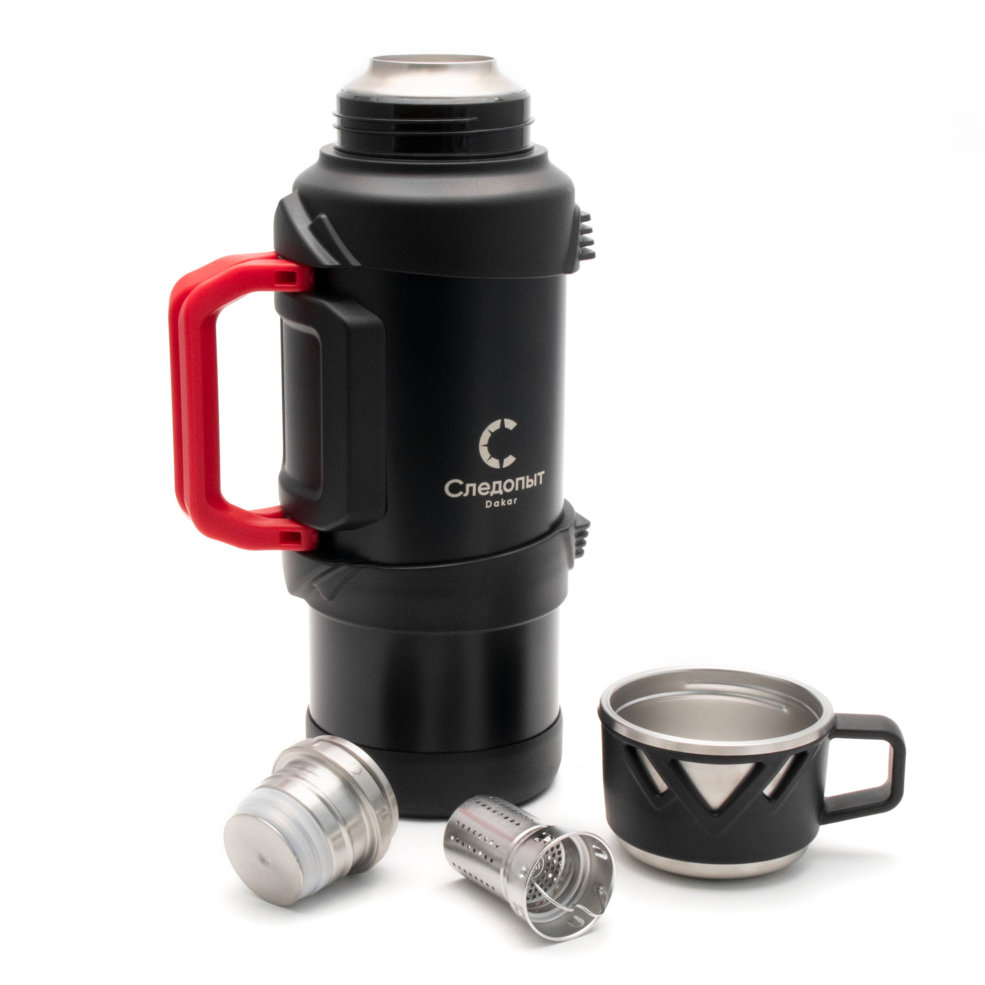 Премиальная серия термосов «Следопыт –DAKAR» отличается высокими теплоизоляционными свойствами и уникальным современным дизайном, символизирующим прочность и надежность. Внутренняя колба изготовлена из нержавеющей стали AISI 316, которая является криогенным конструкционным металлом и имеет повышенные антикоррозийные свойства. Сталь применяется в пищевой и медицинской промышленности. Термос имеет двойные стенки с вакуумной изоляцией и оснащен пробкой-кнопкой, что позволяет быстро вылить содержимое, не отвинчивая пробку полностью. Одной из особенностей данной серии является фильтр и съемный стакан-сито для заварки чая непосредственно внутри термоса. Термос комплектуется стильной вместительной кружкой-крышкой объемом 250 мл. Кроме того, он оснащен удобными складными ручками для переноски и съемным регулируемым наплечным ремнем длиной до 105 см. Термос «Следопыт-DAKAR» - необходимый атрибут в походе, на рыбалке и загородной прогулке, а также отличный подарок к любому знаменательному событию.