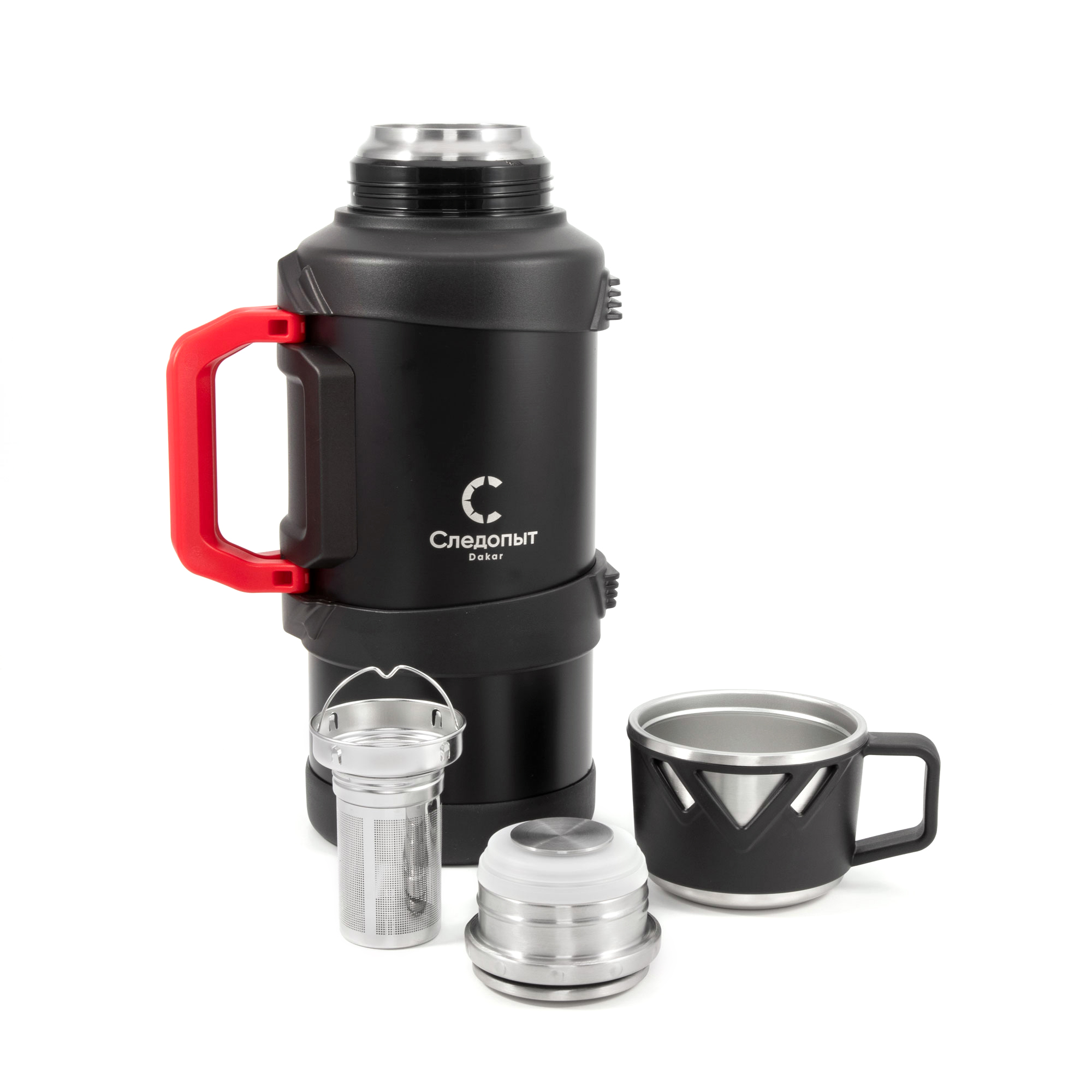 Премиальная серия термосов «Следопыт –DAKAR» отличается высокими теплоизоляционными свойствами и уникальным современным дизайном, символизирующим прочность и надежность. Внутренняя колба изготовлена из нержавеющей стали AISI 316, которая является криогенным конструкционным металлом и имеет повышенные антикоррозийные свойства. Сталь применяется в пищевой и медицинской промышленности. Термос имеет двойные стенки с вакуумной изоляцией и оснащен пробкой-кнопкой, что позволяет быстро вылить содержимое, не отвинчивая пробку полностью. Одной из особенностей данной серии является фильтр и съемный стакан-сито для заварки чая непосредственно внутри термоса. Термос комплектуется стильной вместительной кружкой-крышкой объемом 400 мл. Кроме того, он оснащен удобными складными ручками для переноски и съемным регулируемым наплечным ремнем длиной до 105 см. Термос «Следопыт-DAKAR» - необходимый атрибут в походе, на рыбалке и загородной прогулке, а также отличный подарок к любому знаменательному событию.