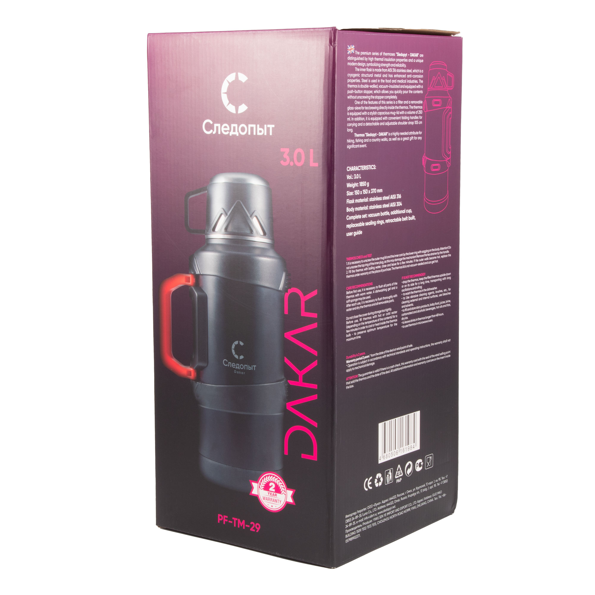 Термос СЛЕДОПЫТ-DAKAR со складными ручками, 3 л/8/