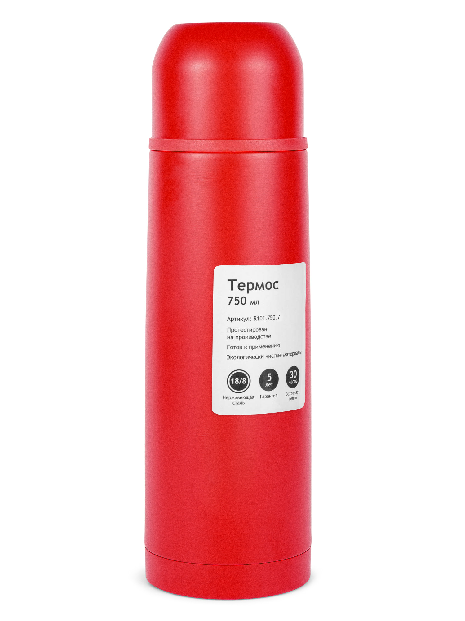 Термос Relaxika 101 (0,75 литра), красный (стикерпак "Альпинизм")