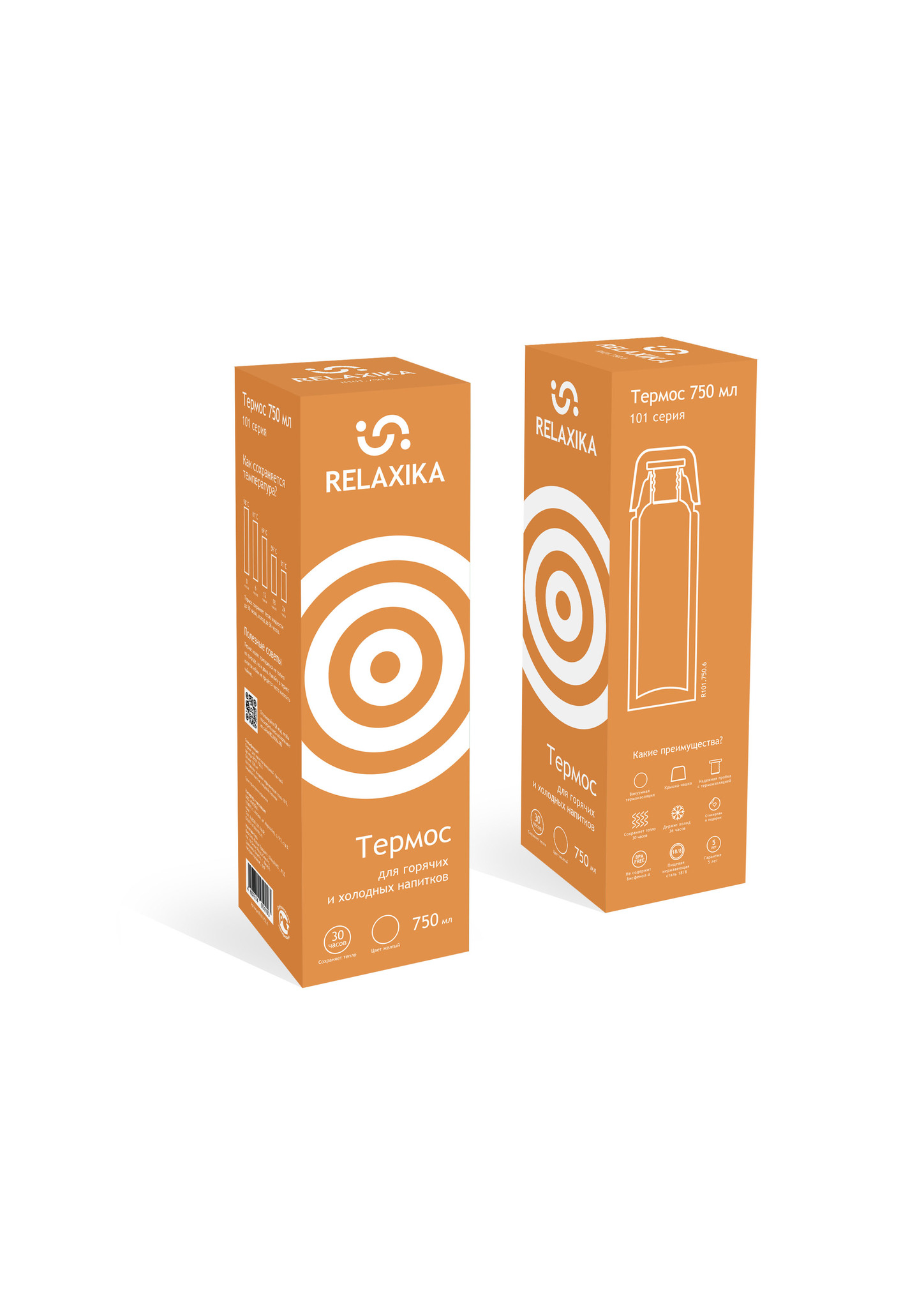Классический термос Relaxika с высокими показателями удержания температуры напитка для походов, путешествий, спорта и ежедневного использования. Прочные двойные стенки из высококачественной нержавеющей стали 18/8 с вакуумной изоляцией гарантируют, что ваш напиток останется холодным в течение 36 часов и горячим до 30 часов.