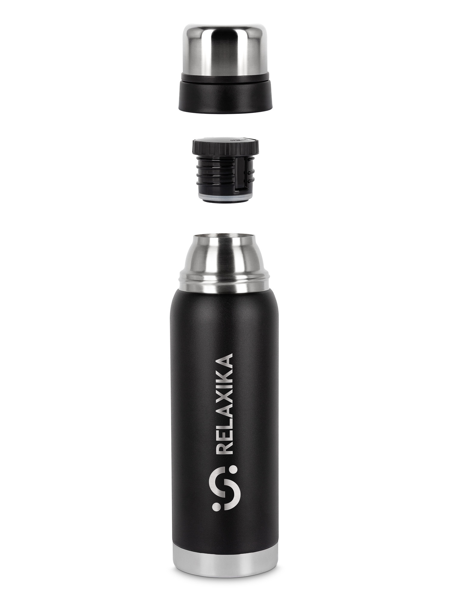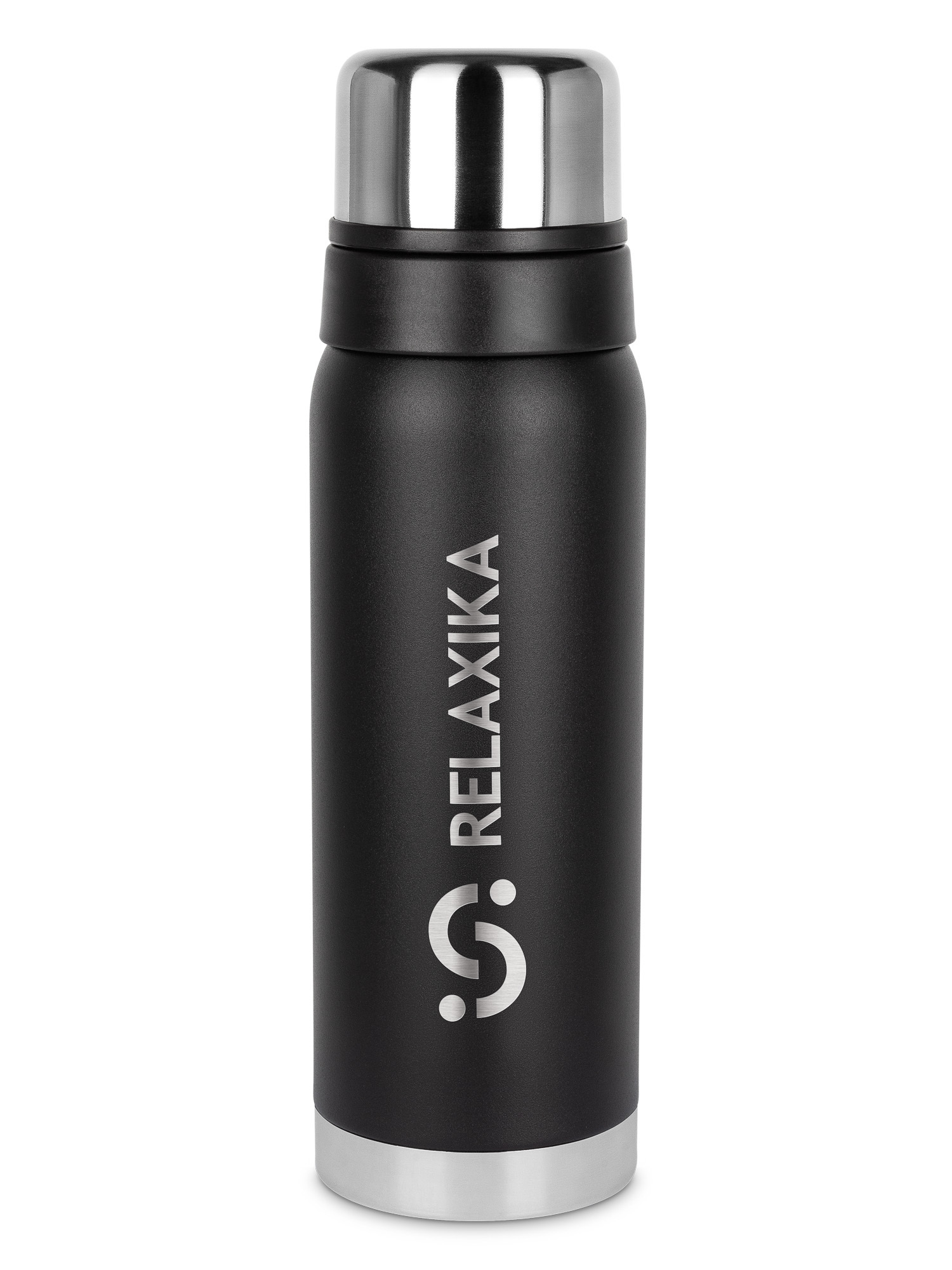 Термос Relaxika 103 объемом 0,75 л., выполненный в стильном черном цвете сохраняет температуру ваших любимых напитков до 36 часов благодаря инновационной технологии удержания тепла. Кроме того, термос способен поддерживать холодные напитки свежими до 42 часов. Компактные размеры изделия позволяют легко брать его с собой куда угодно. С двойной крышкой, которая также служит удобной чашкой, этот аксессуар станет незаменимым спутником как во время активного отдыха, так и повседневных дел.