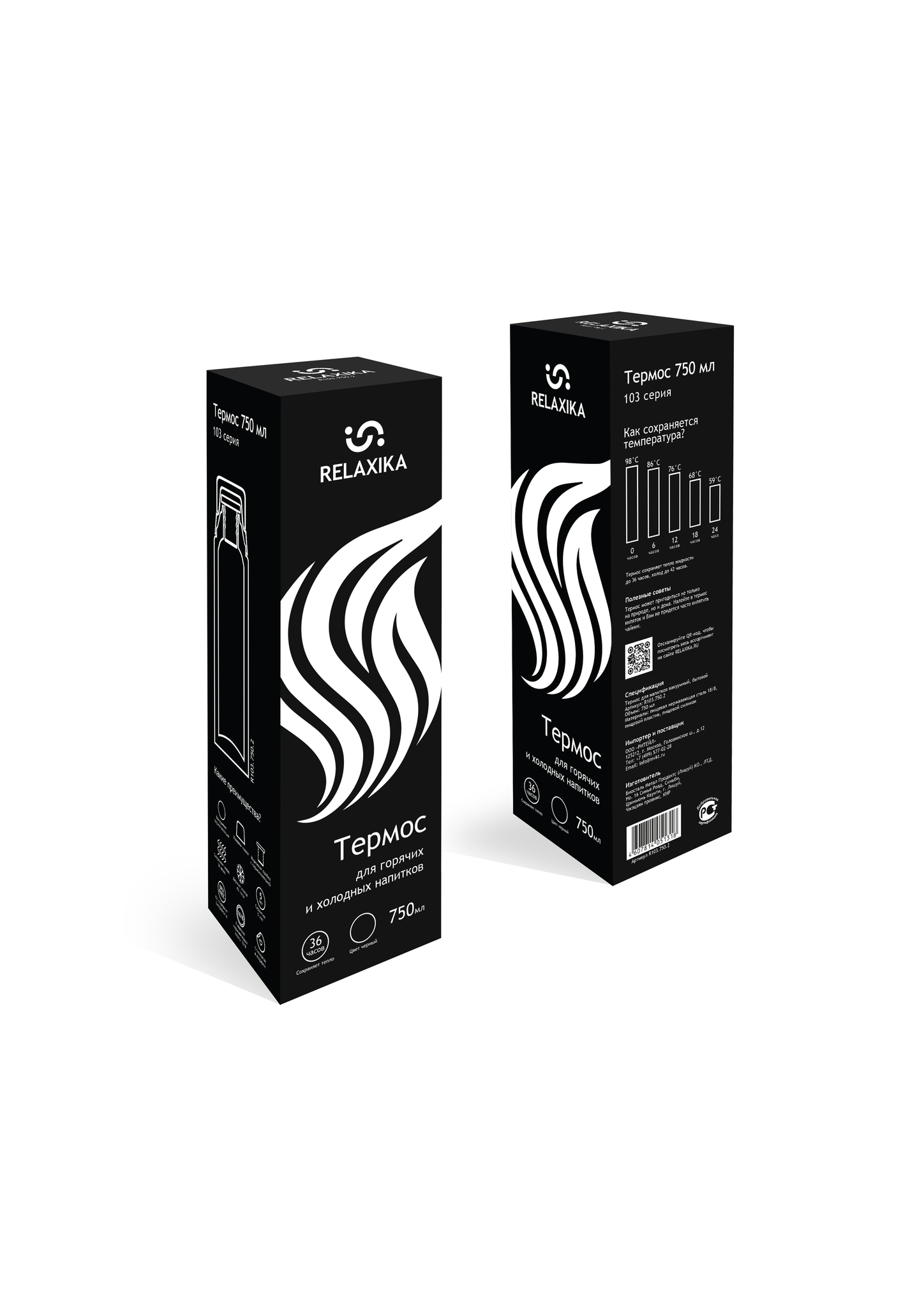 Термос Relaxika 103 (0,75 литра), черный (стикерпак "Зимний спорт")