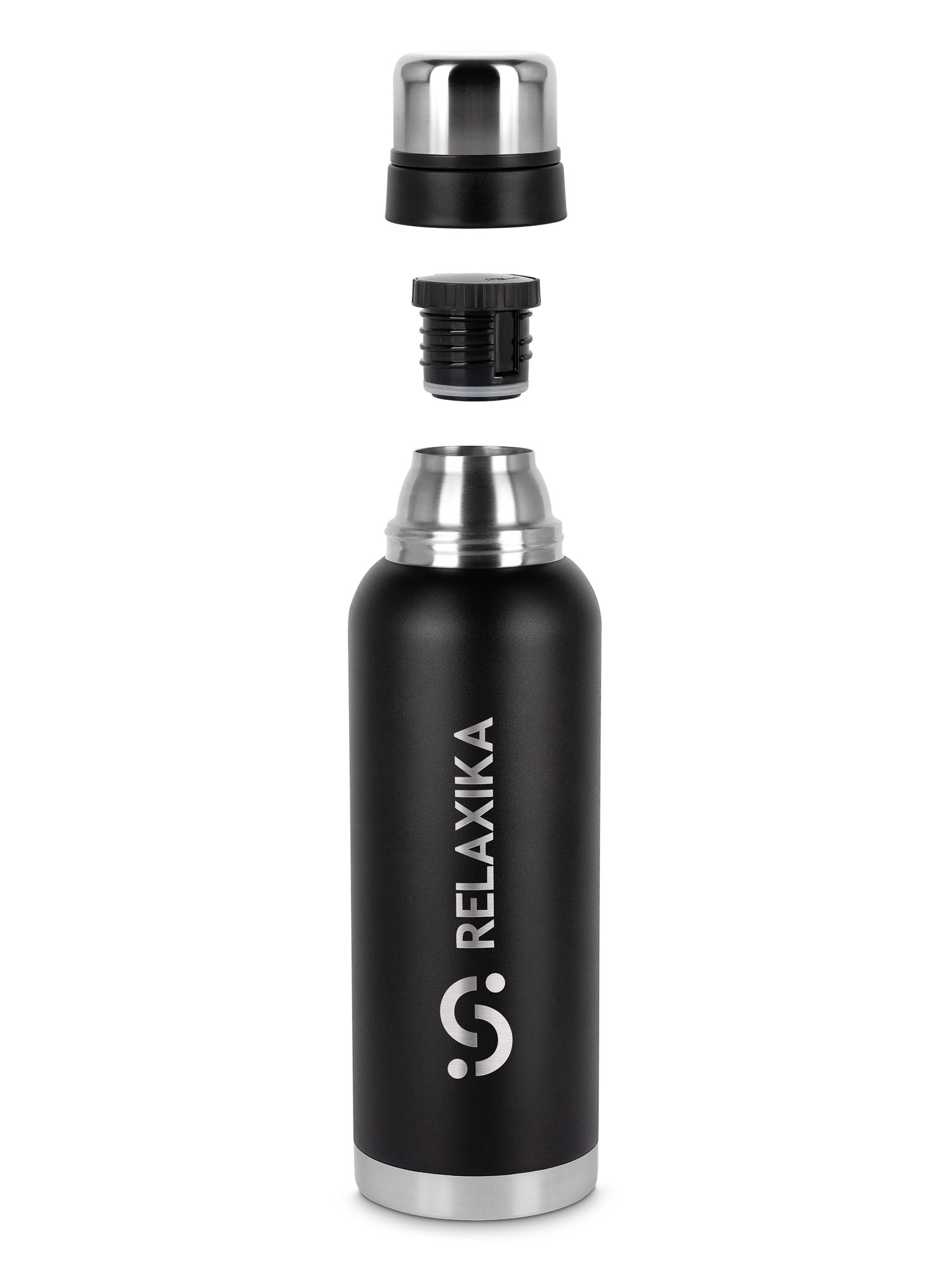 Термос Relaxika 103 объемом 1,2 л., выполненный в стильном черном цвете сохраняет температуру ваших любимых напитков до 48 часов благодаря инновационной технологии удержания тепла. Кроме того, термос способен поддерживать холодные напитки свежими до 54 часов. Компактные размеры изделия позволяют легко брать его с собой куда угодно. С двойной крышкой, которая также служит удобной чашкой, этот аксессуар станет незаменимым спутником как во время активного отдыха, так и повседневных дел.