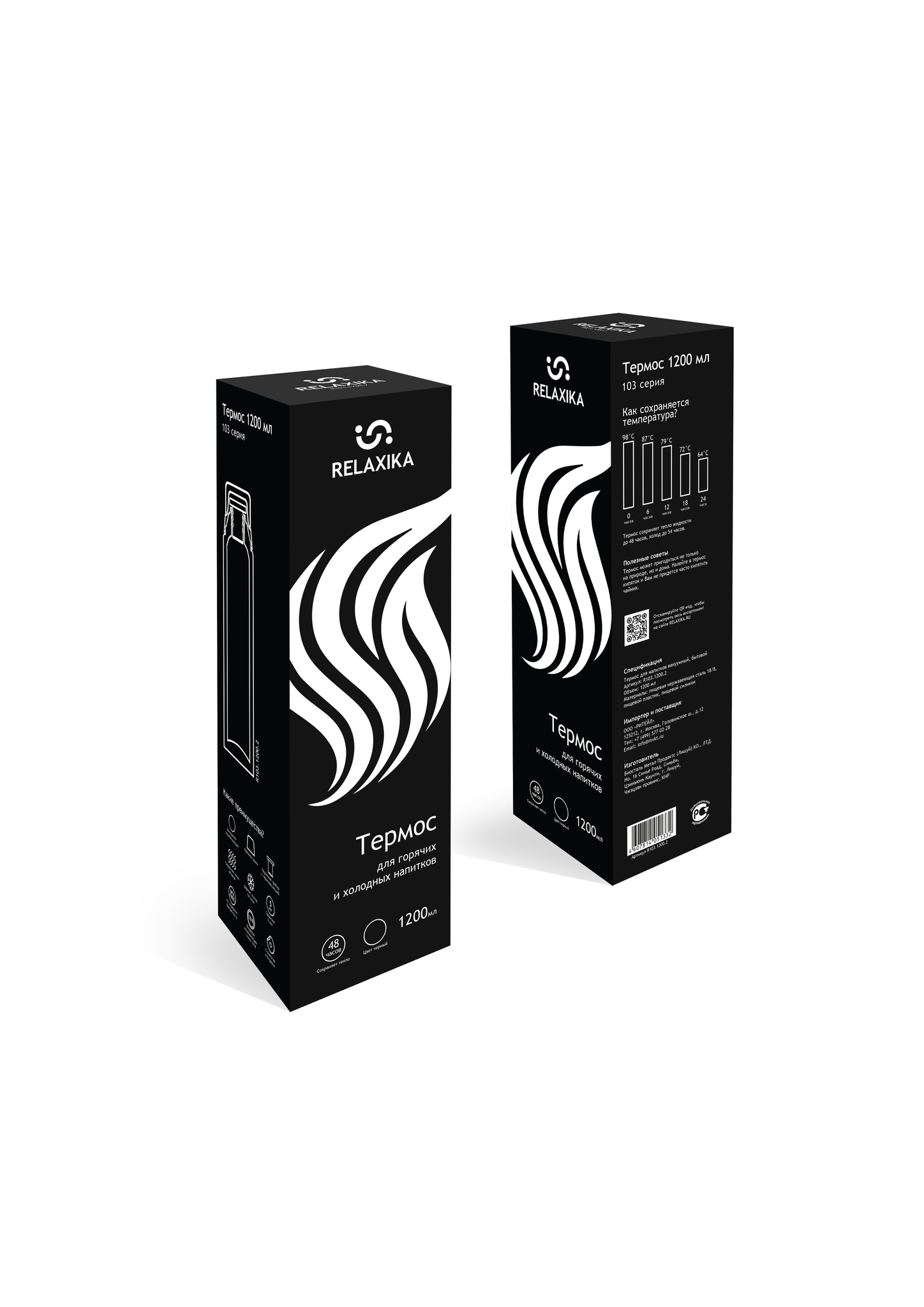 Термос Relaxika 103 (1,2 литра), черный (стикерпак "Зимний спорт")