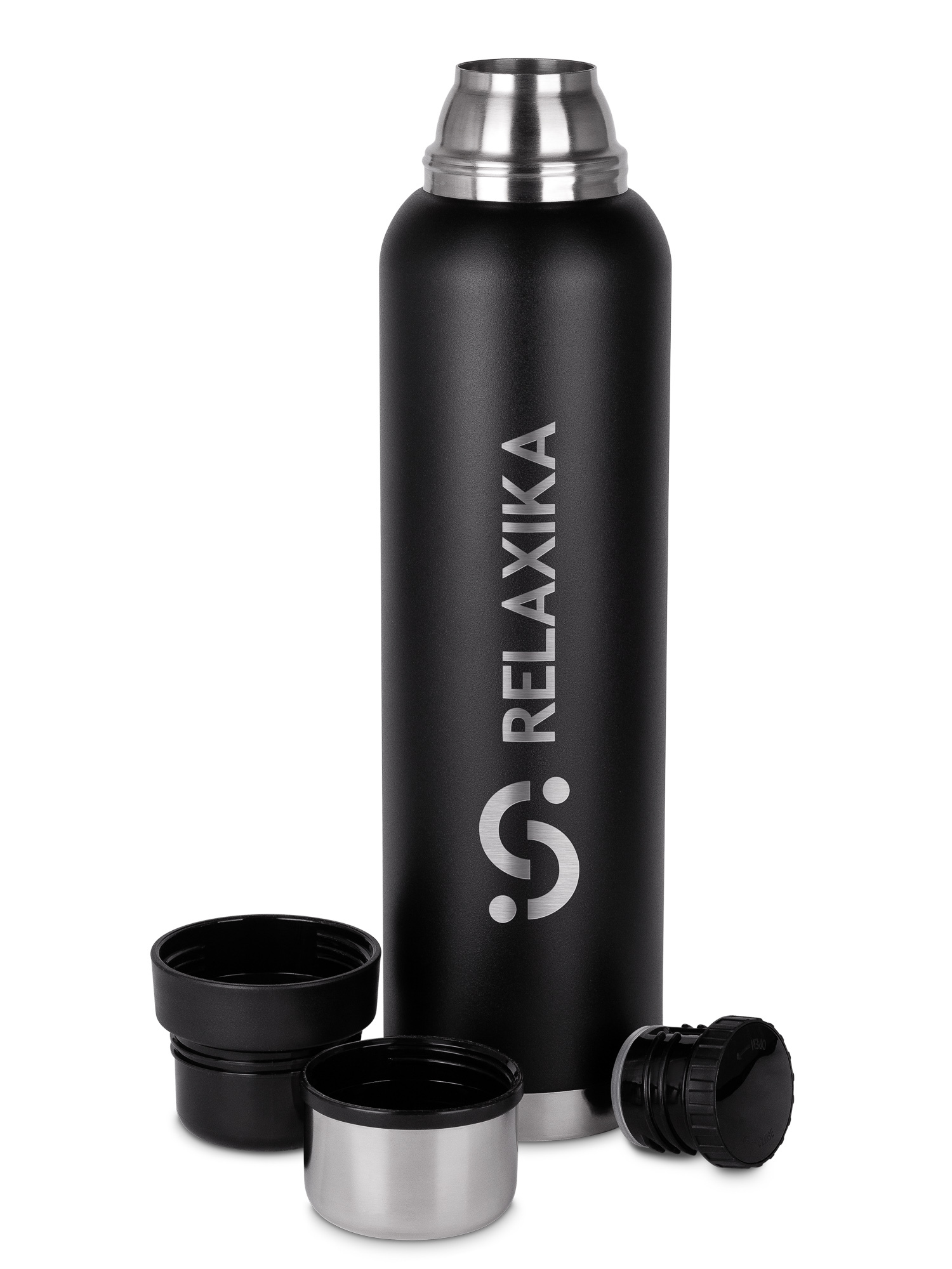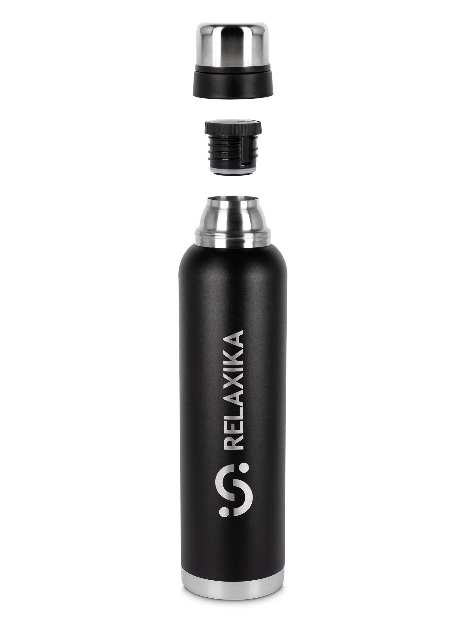 Термос Relaxika 103 (1,6 литра), черный (стикерпак "Зимний спорт")