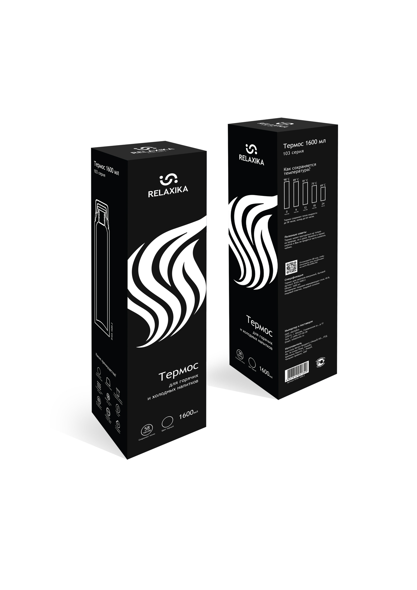 Термос Relaxika 103 объемом 1,6 л., выполненный в стильном черном цвете сохраняет температуру ваших любимых напитков до 58 часов благодаря инновационной технологии удержания тепла. Кроме того, термос способен поддерживать холодные напитки свежими до 64 часов. Компактные размеры изделия позволяют легко брать его с собой куда угодно. С двойной крышкой, которая также служит удобной чашкой, этот аксессуар станет незаменимым спутником как во время активного отдыха, так и повседневных дел.