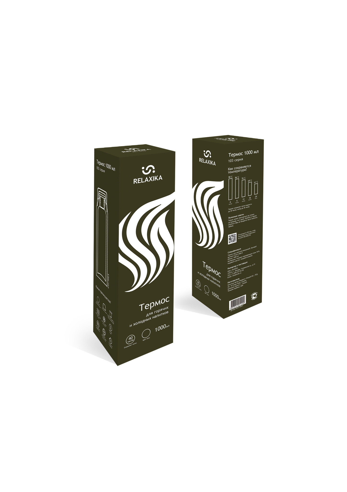 Термос Relaxika 103 (1 литр), хаки (стикерпак "Джиппинг")