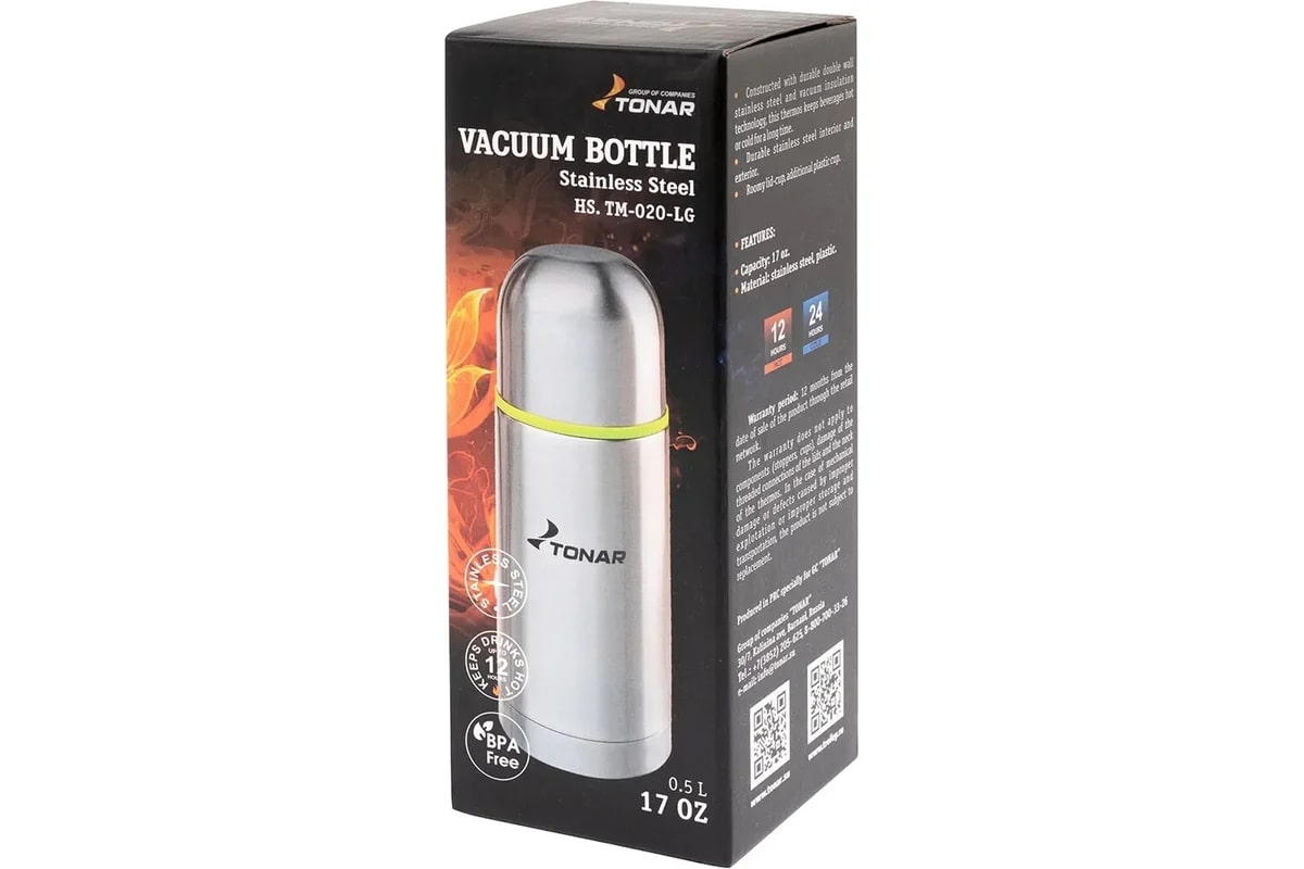 Термос TONAR серебристый 500ML (дополнительная пластиковая чашка) (HS.TM-020-LG)