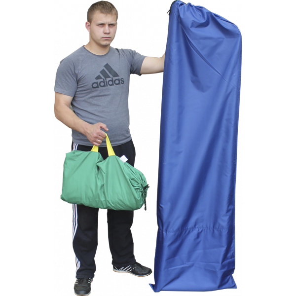 Складной каркас изготовлен из стальной трубы диаметром 18 мм и покрыт порошковой краской. Тент сшит из ткани Oxford с водоотталкивающей водяной пропиткой 2000 мм. водного столба.
