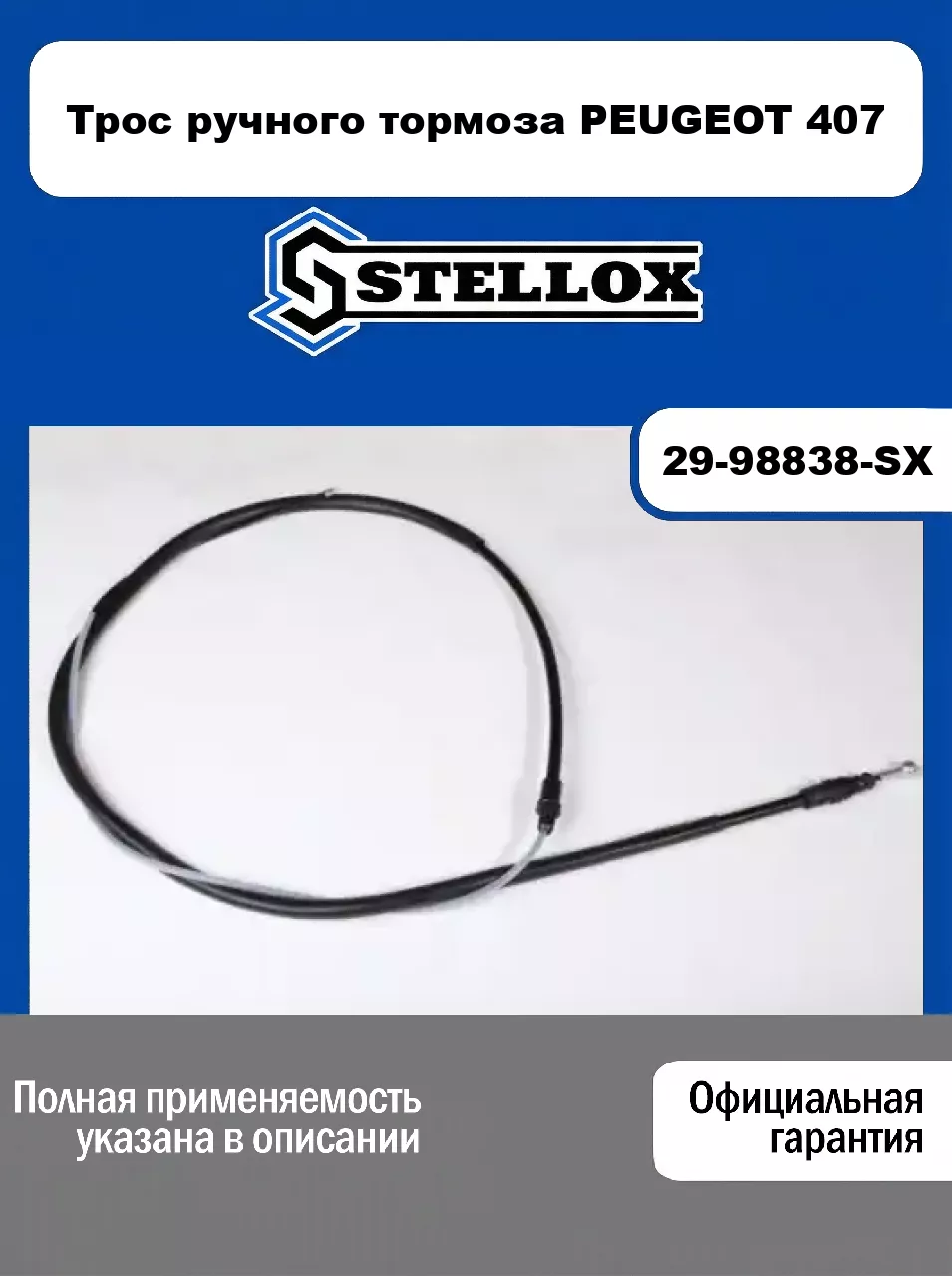 Трос ручного тормоза PEUGEOT 407 29-98838-SX
