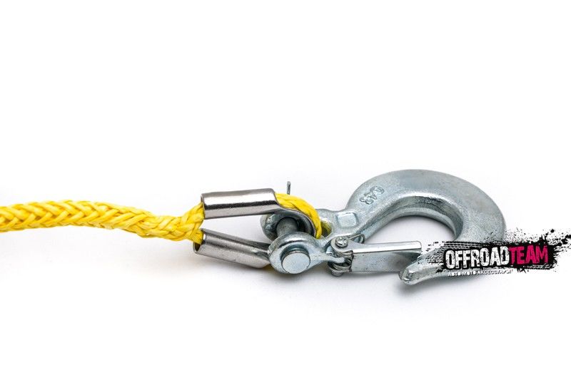 Трос для лебедки синтетический OffRoadTeam Basic с крюком 4.2мм.х20м. ярко жёлтого цвета, оснащён петлёй и крюком.