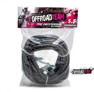 Трос для лебедки синтетический OffRoadTeam Professional с крюком 5.5мм.х15м. цвета графит, оснащён петлёй и крюком.