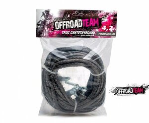 Трос для лебедки синтетический OffRoadTeam Professional с крюком 6.3мм.х15м. цвета графит, оснащён петлёй и крюком.