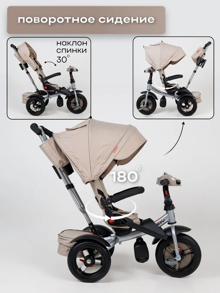 Велосипед коляска трехколесный с ручкой, Tech Team Luxury music бежевый 2026