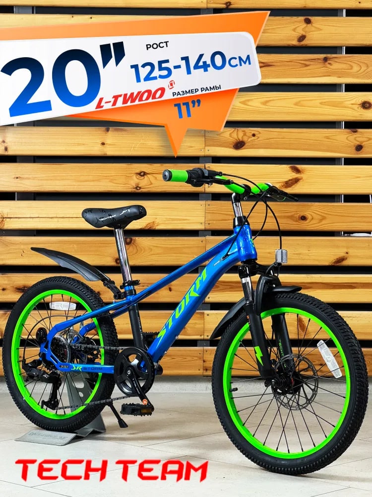 Подростковый велосипед Tech Team Storm 20"х11" синий 2026 года предназначен для велосипедистов возрастом от 6 лет и ростом от 120 до 140 см.