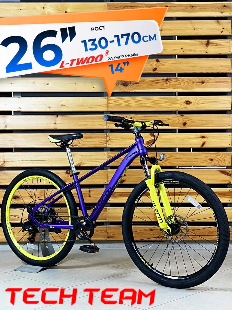 Подростковый велосипед Tech Team Storm 26"х14" фиолетовый 2026 предназначен для каждодневной эксплуатации в черте города, по пересечённой и ухабистой местности
