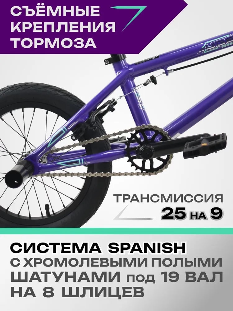 БМХ UGen от компании TechTeam для тех, кто хочет с самого начала выжимать максимум от тренировок. Рама, руль и вилка BMX Ugen 14" выполнена из термоупрочненного алюминиевого сплава Al 6061-T4-T6. Спецификация подобрана таким образом, чтобы снизить вес байка без ущерба надежности. Этот БМХ позволит сохранить больше энергии и сил на оттачивание правильной техники и станет отличным напарником новому поколению райдеров