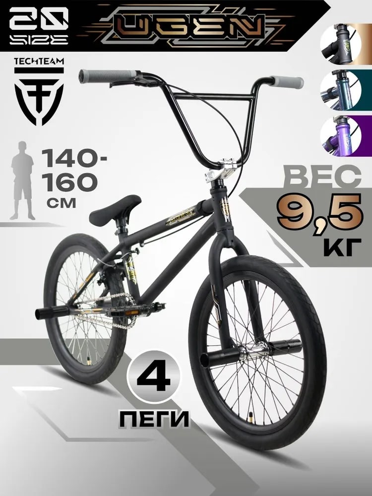 Новый БМХ UGen от компании TechTeam для тех, кто хочет с самого начала выжимать максимум от тренировок. Рама, вынос и втулки BMX Ugen 20" выполнена из термоупрочненного алюминиевого сплава Al 6061-T4-T6. Спецификация подобрана таким образом, чтобы снизить вес байка без ущерба надежности. Этот БМХ позволит сохранить больше энергии и сил на оттачивание правильной техники и станет отличным напарником новому поколению райдеров!