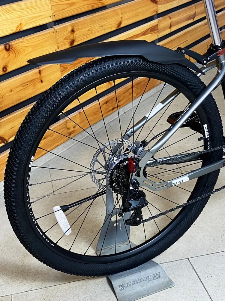 Рама велосипеда изготовлена из прочной и надёжной стали, имеет размер 19 дюймов. Спереди стоит стальная амортизационная вилка с алюминиевыми штанами и короной, она отлично справляется со всеми дорожными неровностями, нередко встречающимися на пути. Размер колёс 29 дюймов и установленная на них резина позволяют с уверенностью передвигаться как в условиях города, так и за его чертой.