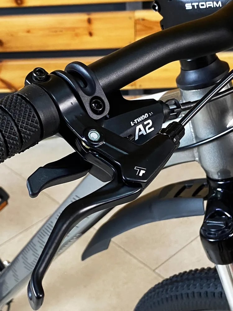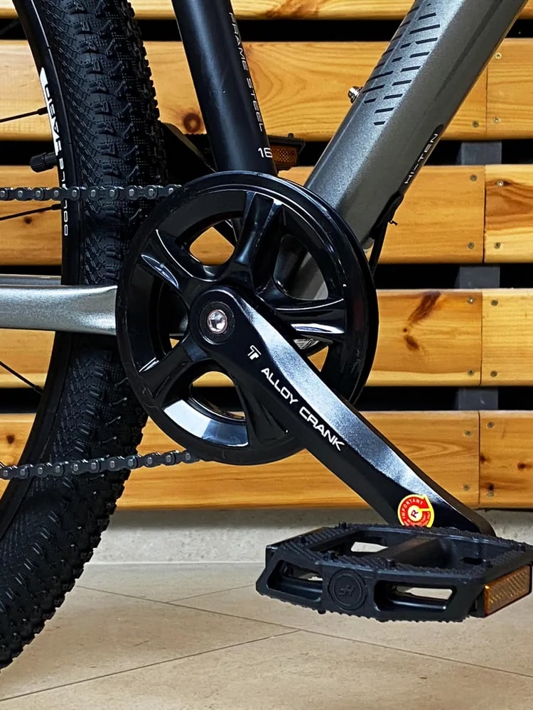 Переключение скоростей отличается исключительной простотой – здесь только один шифтер компании L-TWOO A2 на руле, приводящий в действие задний переключатель той же фирмы. Переключатель же перекидывает цепь со звезды на звезду трещотки Shimano на 7 скоростей. Передач хватит для всех условий езды – от скоростных спусков до затяжных подъёмов. Спереди установлена система HDL на одну звезду и каретка на промышленных подшипниках.