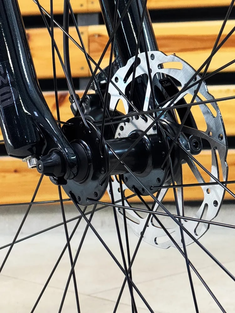 Стальные втулки обоих колёс, как и каретка, имеют в своей основе всё те же промышленные подшипники. Это техническое решение повышает надёжность этих компонентов и не требует их обслуживания. Обода колёс двойные алюминиевые, обладающие хорошим запасом прочности.