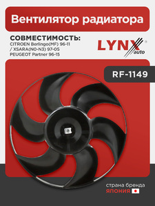 Вентилятор радиатора LYNXauto RF-1149. Для: CITROEN Ситроен Berlingo(Берлинго)(MF) 96-11 / XSARA(N0-N3) 97-05, PEUGEOT Пежо Partner 96-15