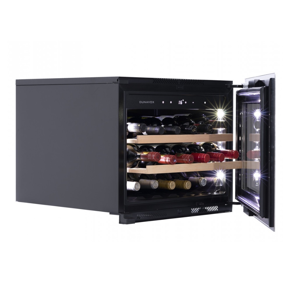 Инженеры компании Dunavox разработали новую модель встраиваемого винного шкафа DAVG-18.46SS.TO. Установить его можно в нишу или колонну Вашего мебельного гарнитура. Модель идеально вписывается в любой подходящий для Вас интерьер гостиной кухни, бара или кабинета. После установки данного винного шкафа сохраняется функция Touch Open. Дверца открывается во время прикосновения Вашей руки к стеклу. При необходимости можно установить ручку из нержавеющей стали и настроить чувствительность сенсора. В качестве дополнительной функции, производители Dunavox разработали реверсивную дверь. Это поможет разместить шкаф в удобном для Вас месте или расположить две модели рядом, создав технологию открытия side-by-side.