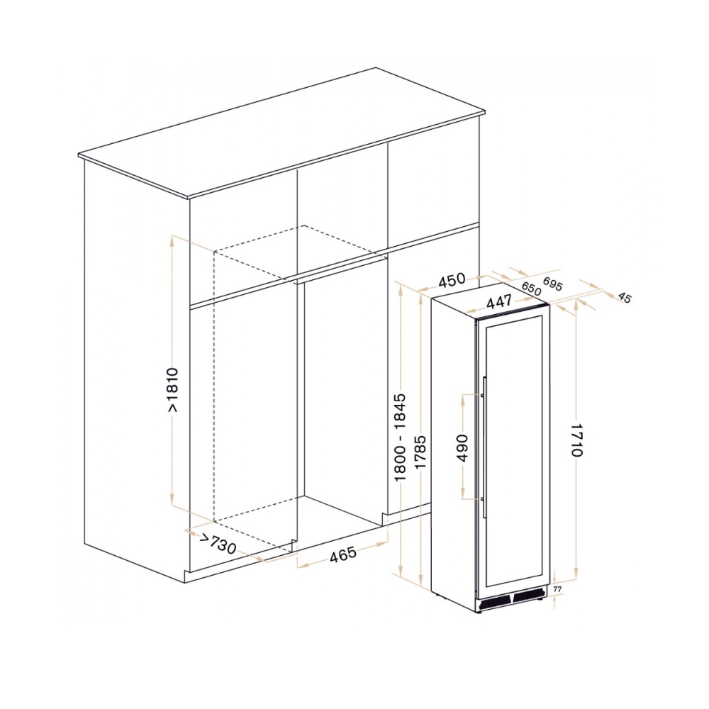 Продвинутый функционал и комплектация винного шкафа MV106-KST2 (Slim) от итальянского бренда Meyvel создаёт одну из самых высококачественных систем для профессионального и длительного хранения различных сортов вин. Внутри шкафа поддерживается влажность в диапазоне 60-80%, как в настоящем винном погребе. Этот винный холодильник отлично впишется в любой кухонный гарнитур благодаря своим размерам. Это одна из немногих моделей, у которой ширина всего 45 см.