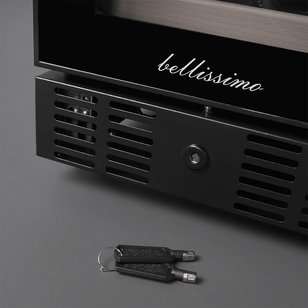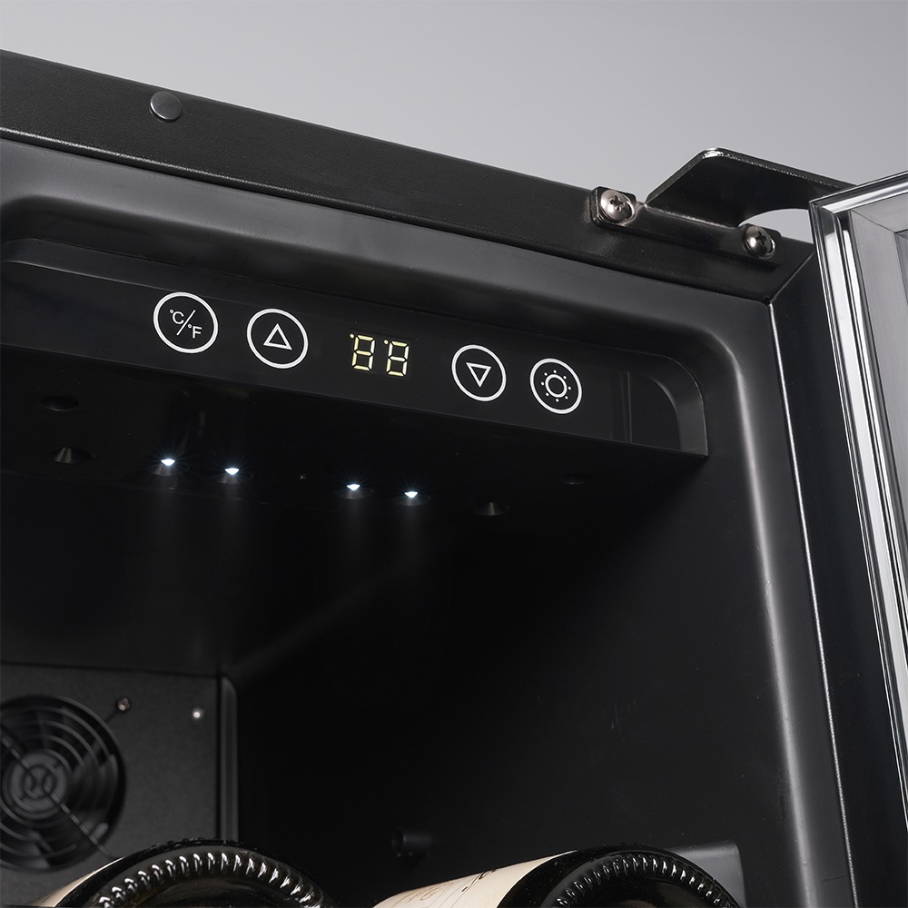 Уровень влажности также не оставлен без внимания — система автоматически поддерживает оптимальные 60–80%. В таком микроклимате пробка не пересыхает, бутылка остаётся герметичной, а напиток защищённым от окисления и внешних запахов. Уровень шума устройства — всего 41 дБ, что тише обычного разговора. Шкаф не гудит, не мешает, не привлекает к себе внимания — он просто делает свою работу, сохраняя каждый экземпляр коллекции в идеальных условиях.