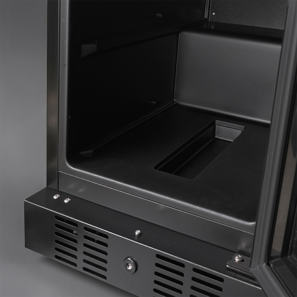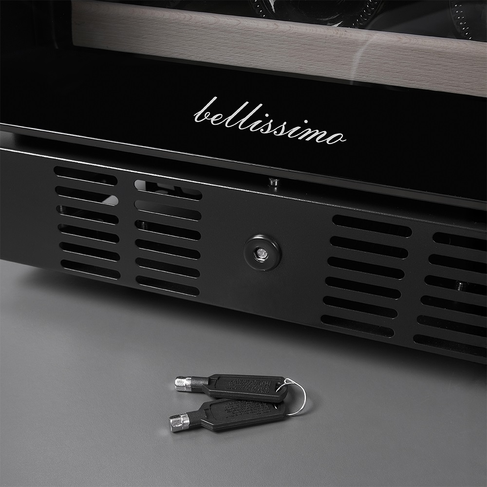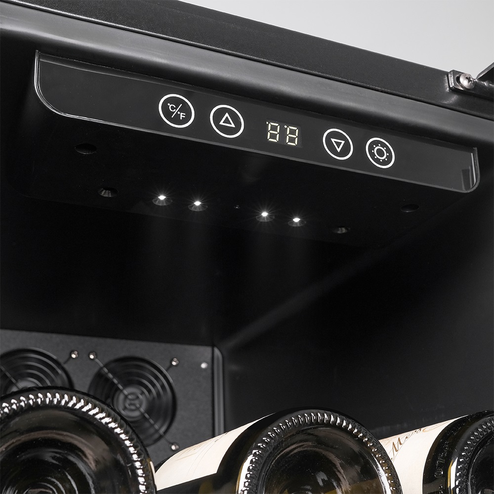 Внутренняя среда поддерживается чистой за счёт встроенного угольного фильтра, который нейтрализует запахи и задерживает частицы пыли. Это особенно важно: даже минимальные загрязнения могут повлиять на вкус вина при долгом хранении. Обслуживание фильтра предельно простое — замена производится вручную, без инструментов, и занимает считанные минуты.